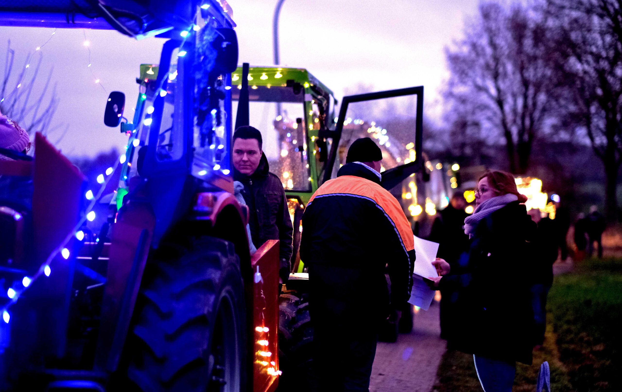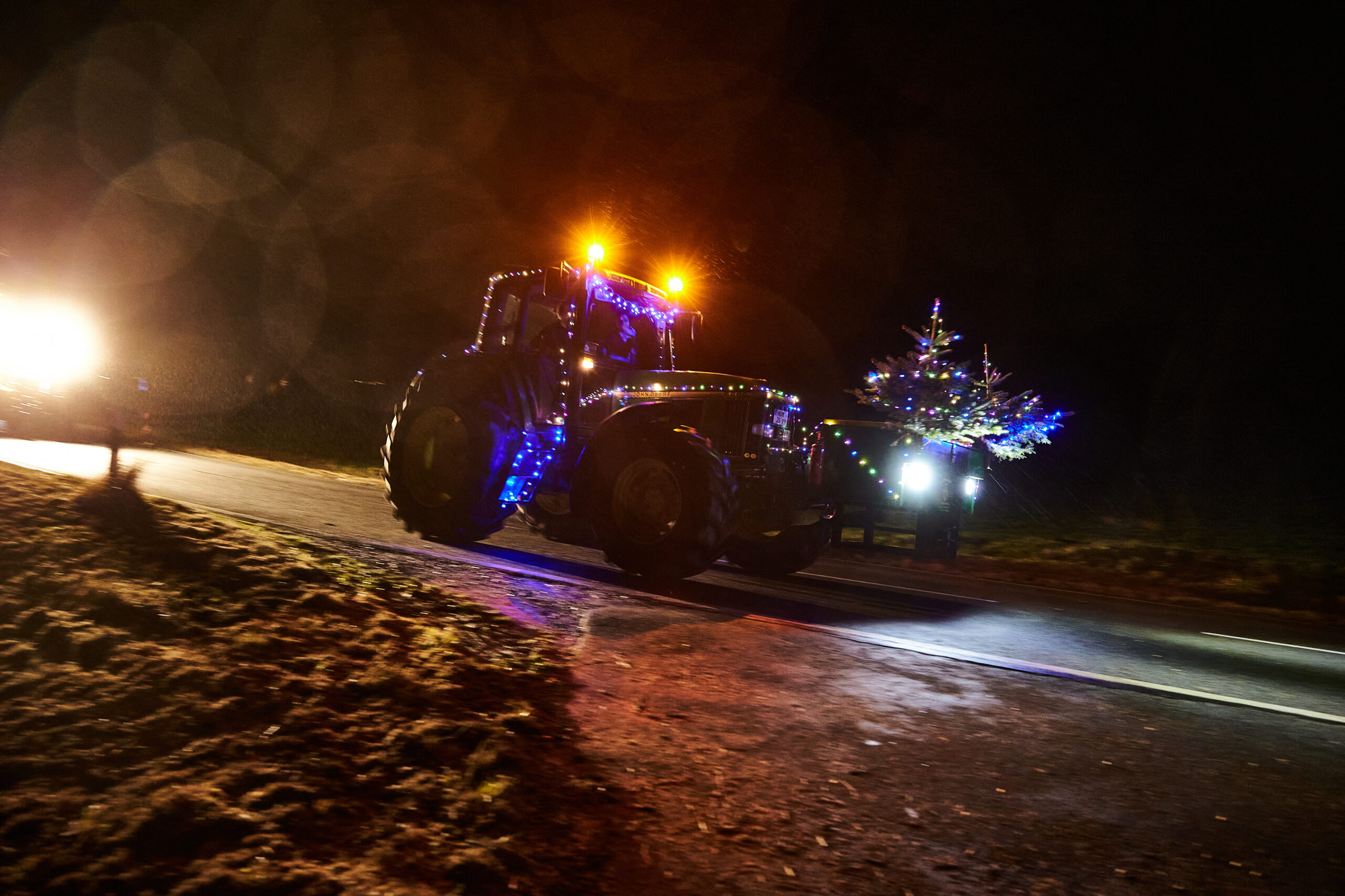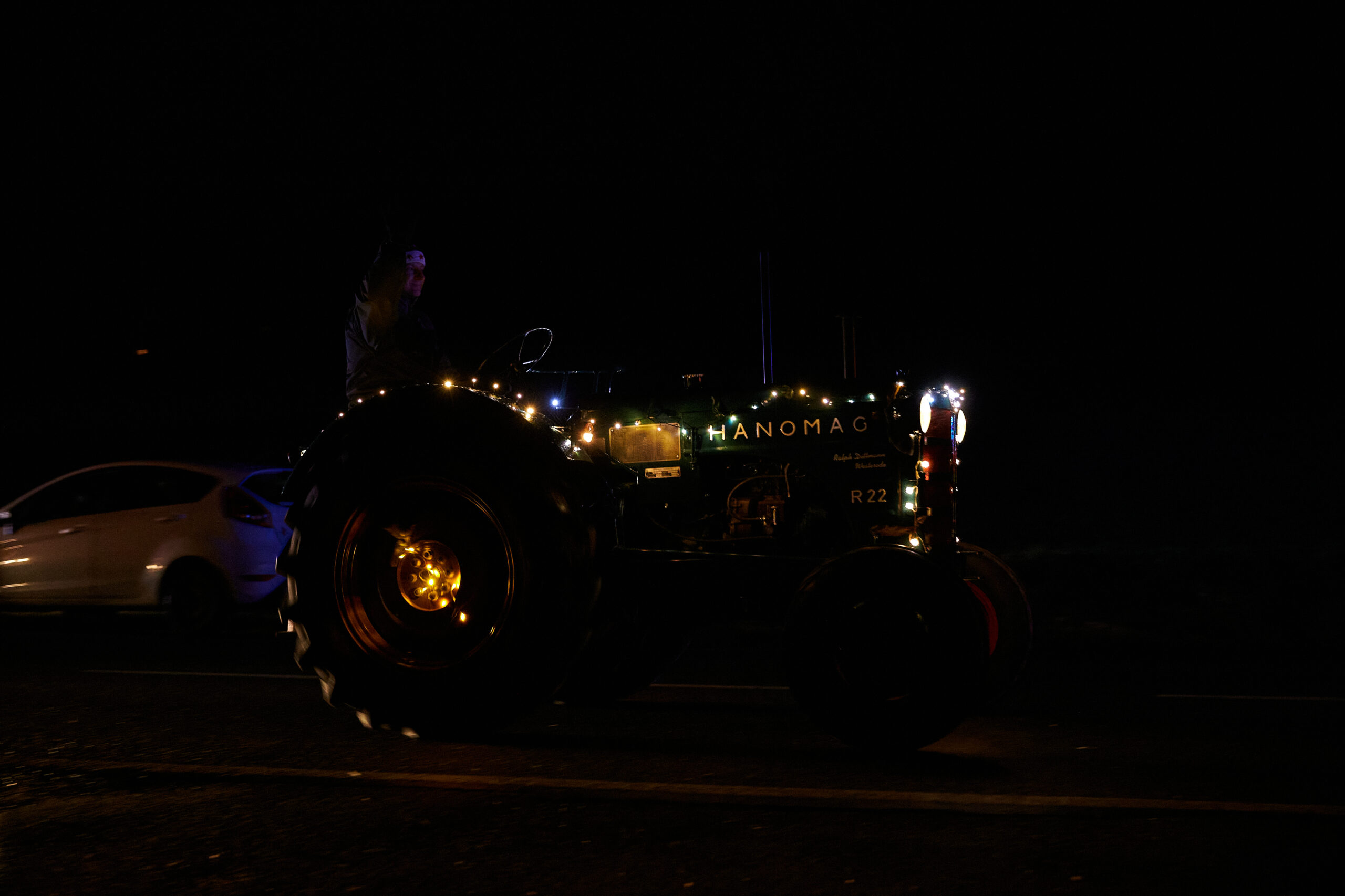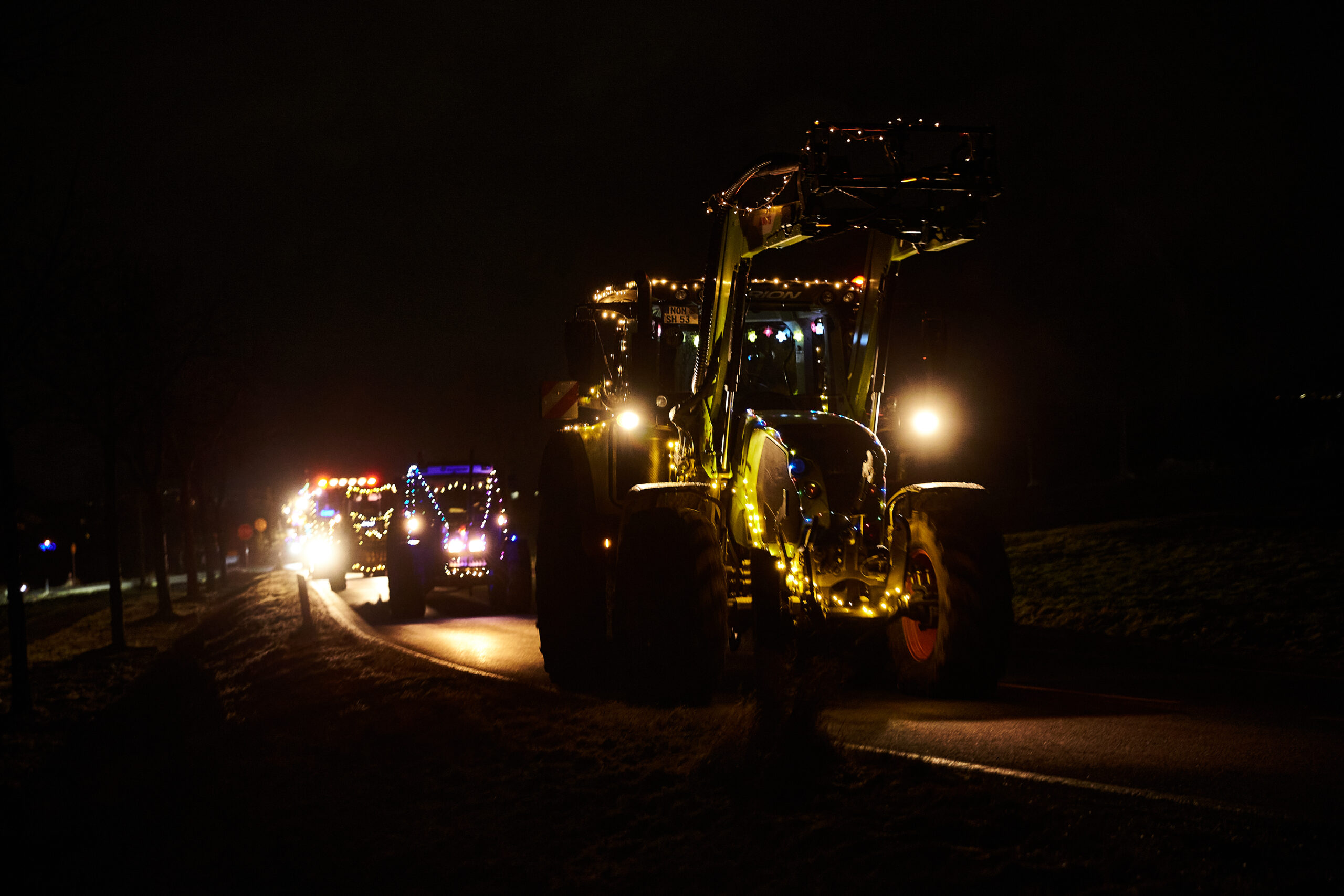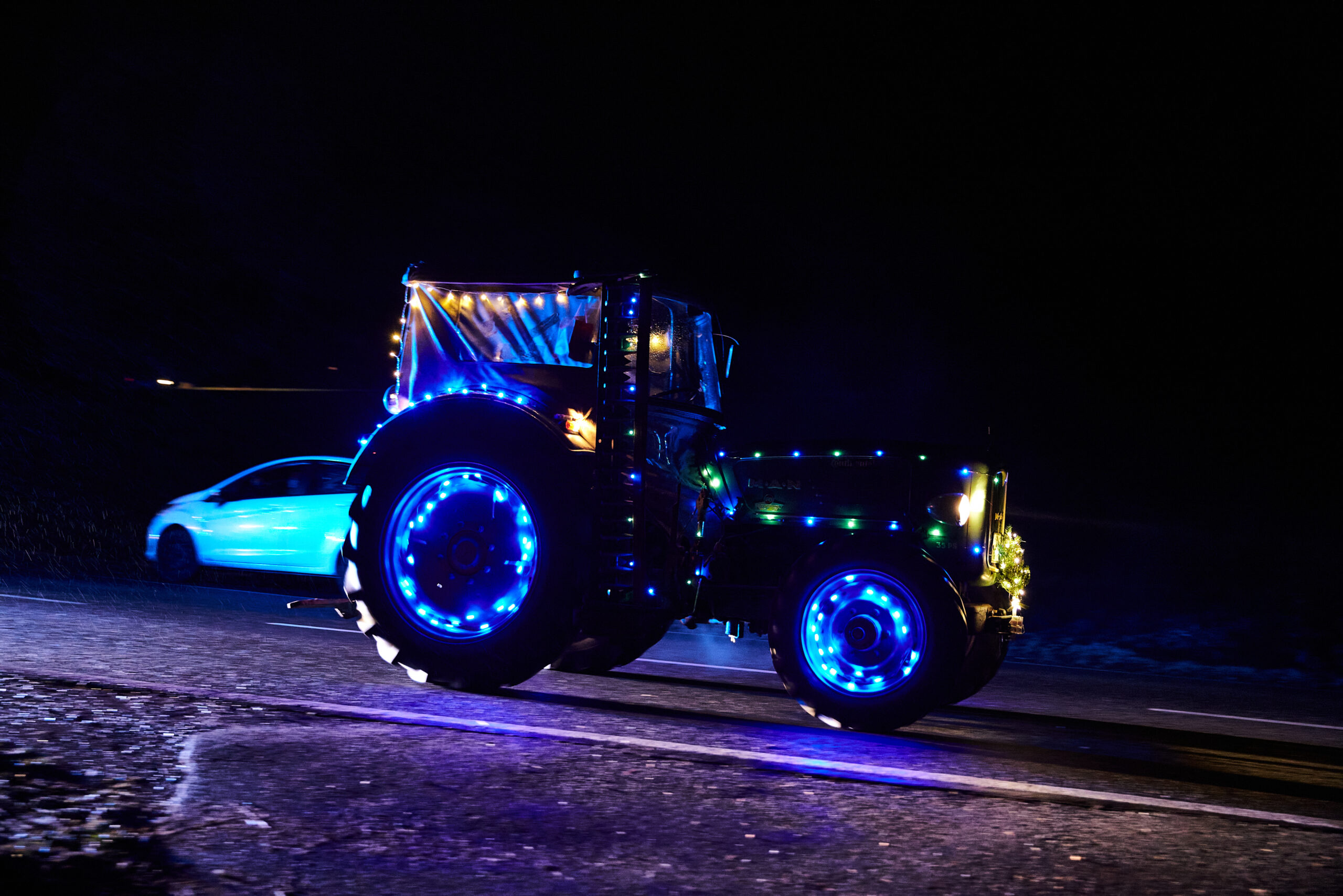 Beleuchtete Traktoren und Feuerwehrautos zogen am 4. Adventssonntag durch die Straßen von Sudheim und Bühle. Wie in vielen anderen Orten auch wurden die Maschinen mit weihnachtlichen Lichtern und Motiven geschmückt.