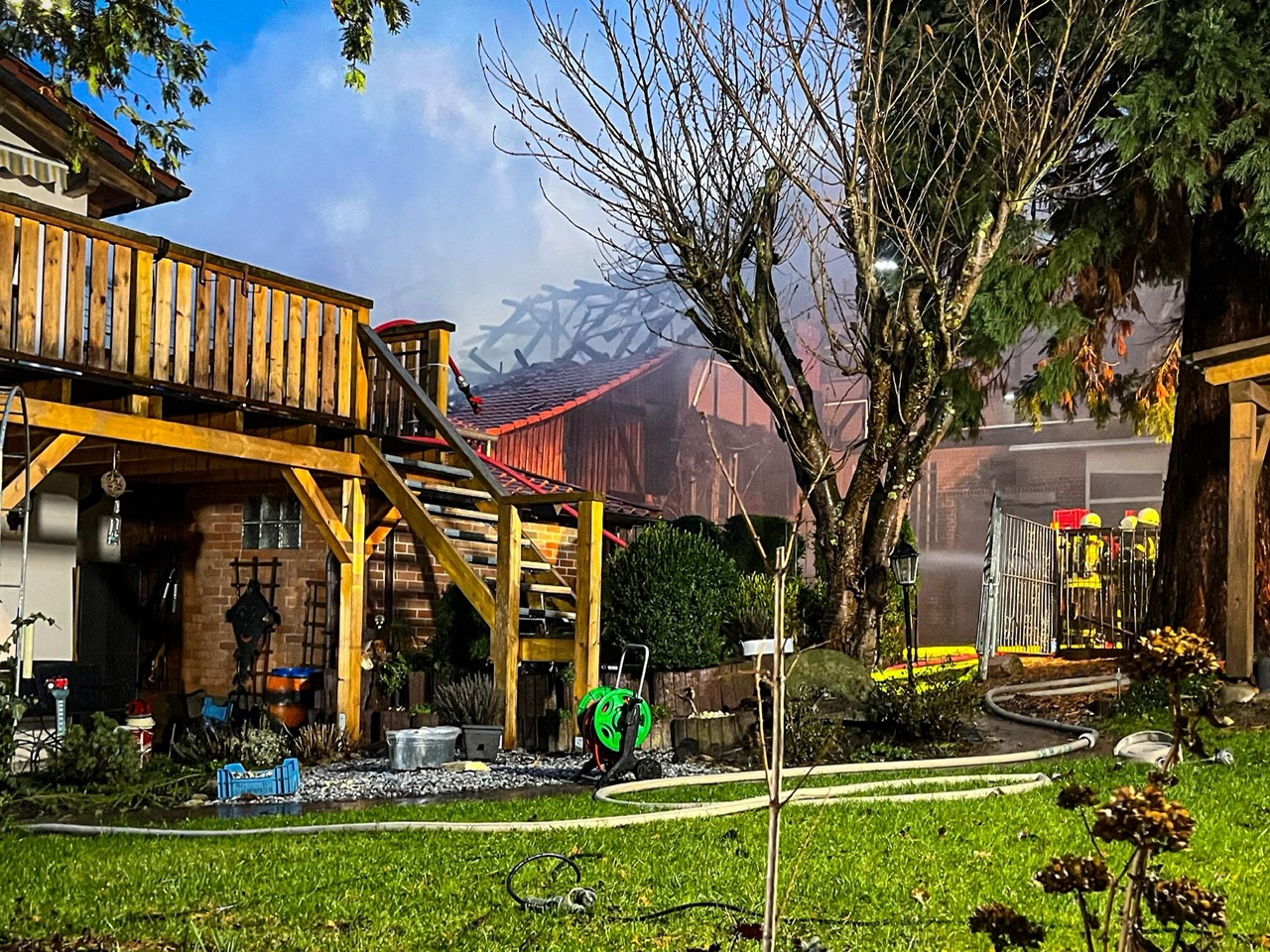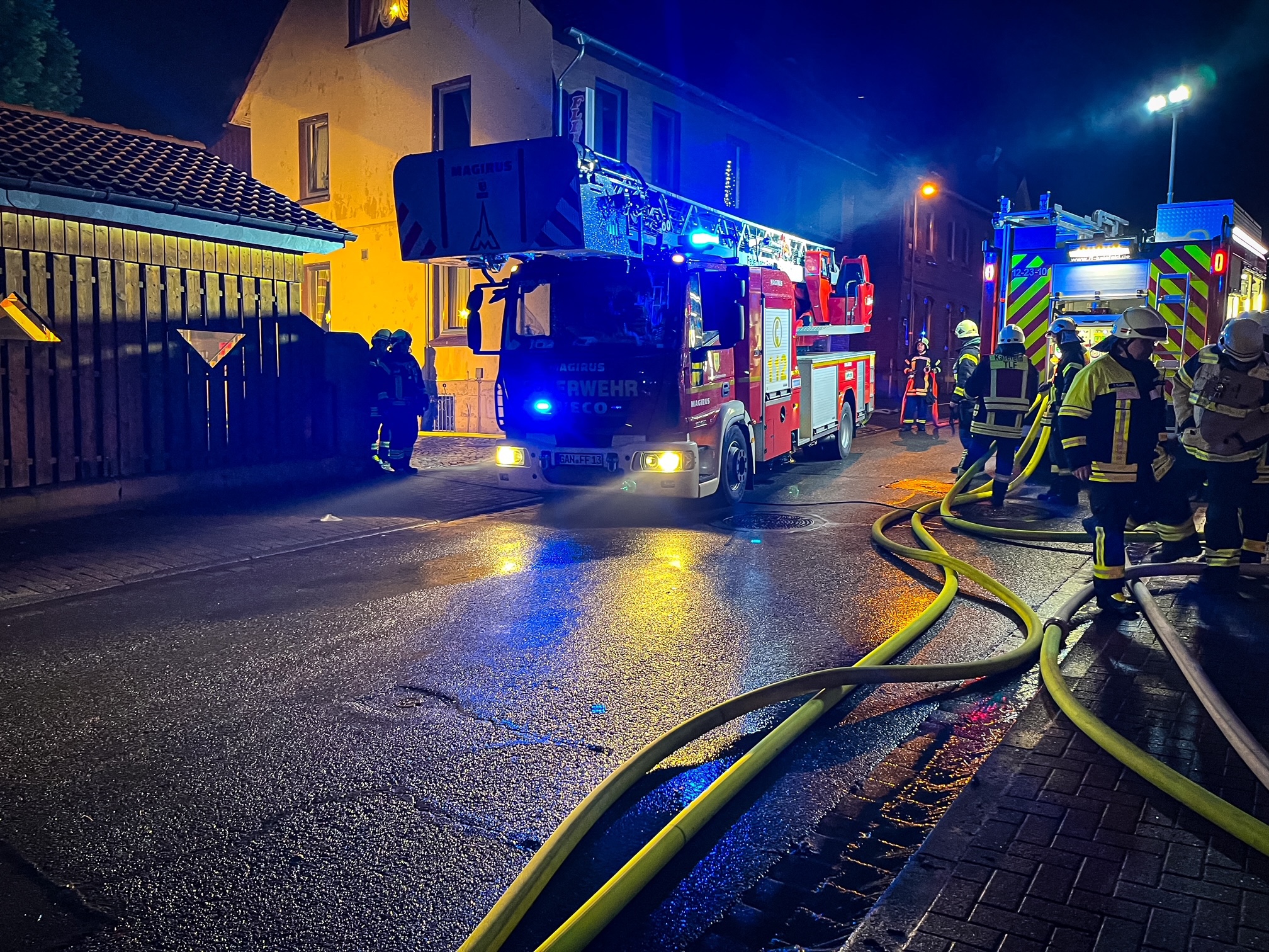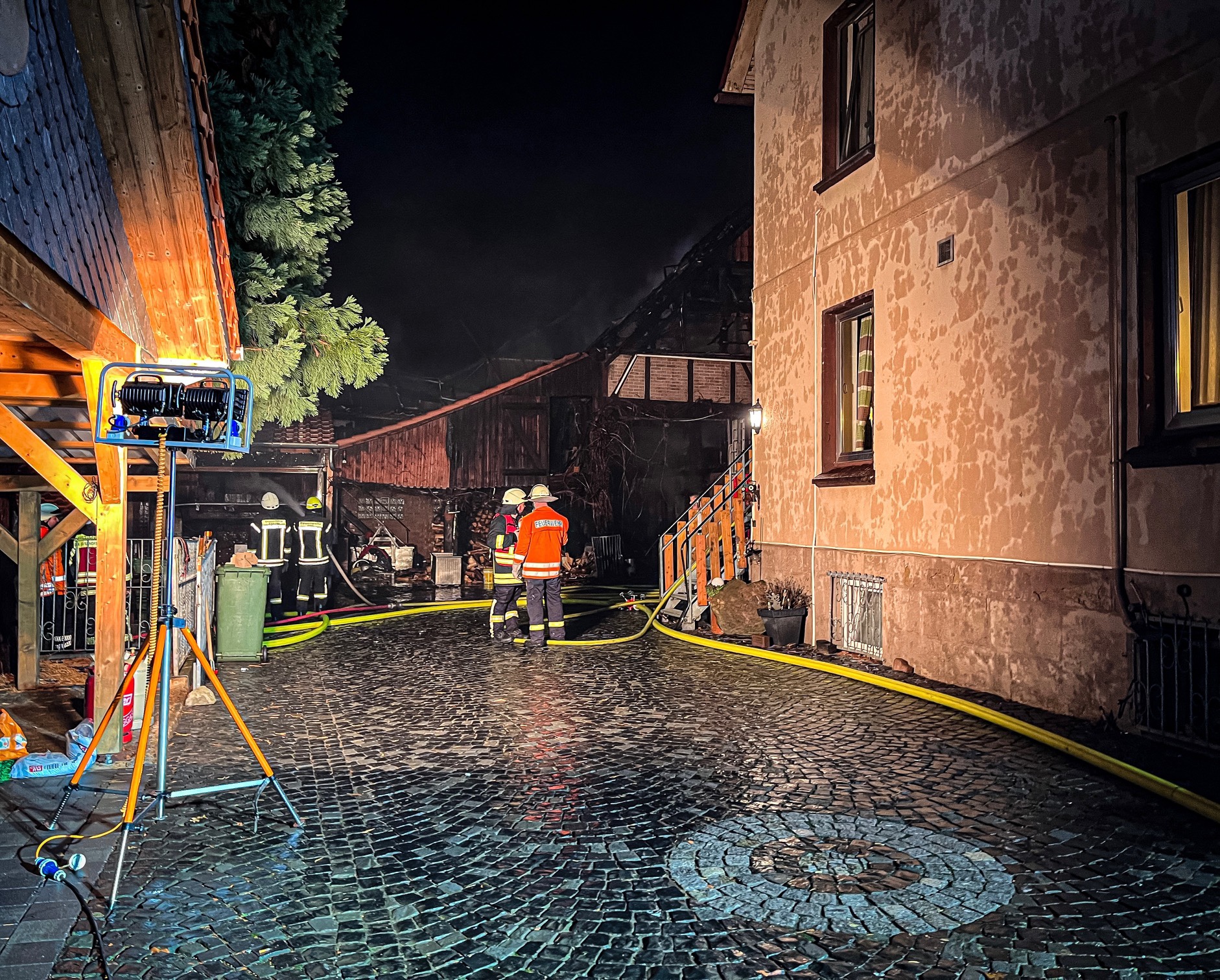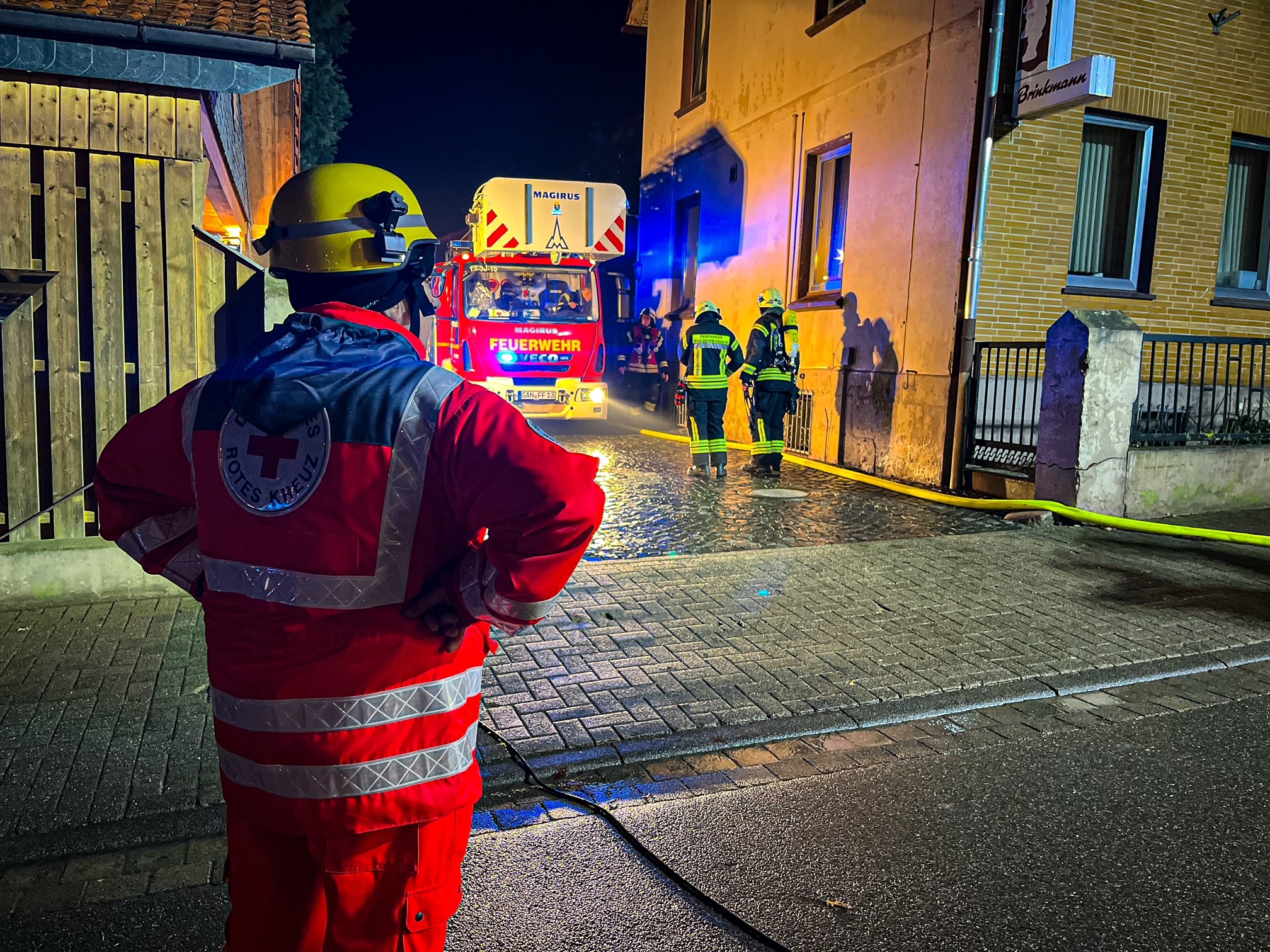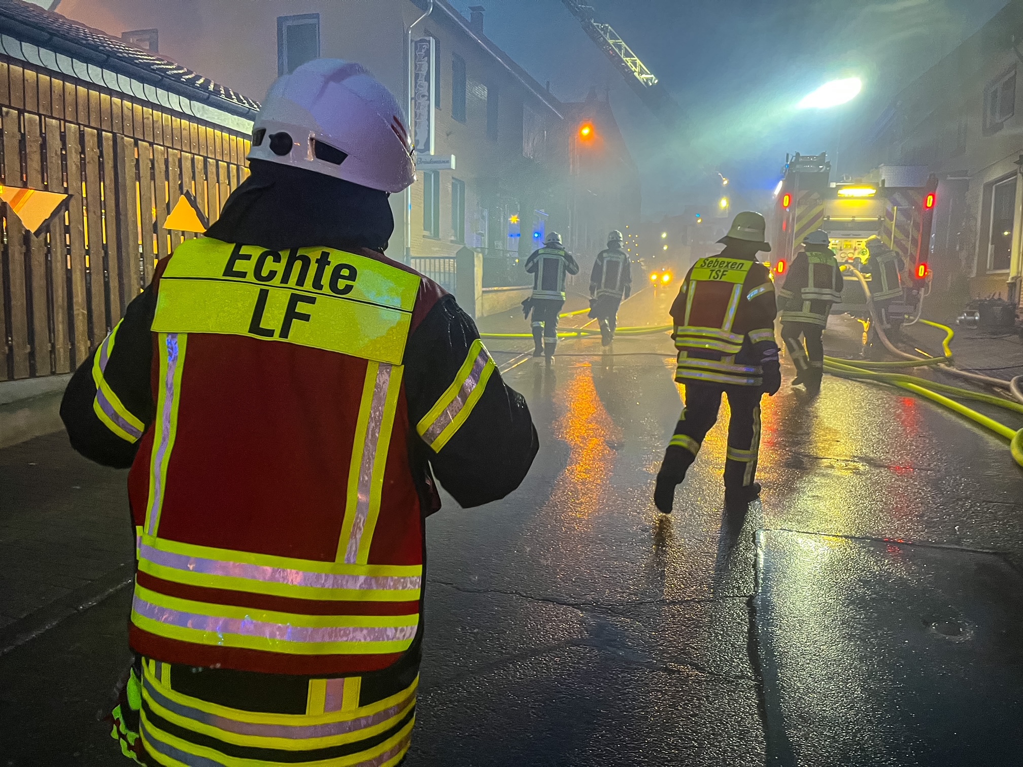 Das Feuer selbst war bereits nach kurzer Zeit so groß, dass kilometerweit eine riesige Rauchwolke zu sehen war. Wie Joel Fröchtenicht, Sprecher der Kreisfeuerwehr, berichtet, waren die ersten Einsatzkräfte gegen 15:30 Uhr am Einsatzort. Laut ersten Meldungen waren auch noch Personen im brennenden Gebäude. Einsatzleiter Jan Bialaschewitz habe deshalb Vollalarm für die gesamte Gemeinde Kalefeld auslösen lassen. „Aufgrund der engen Bebauung war ein schnelles Eingreifen erforderlich“, betont Bialaschewitz.