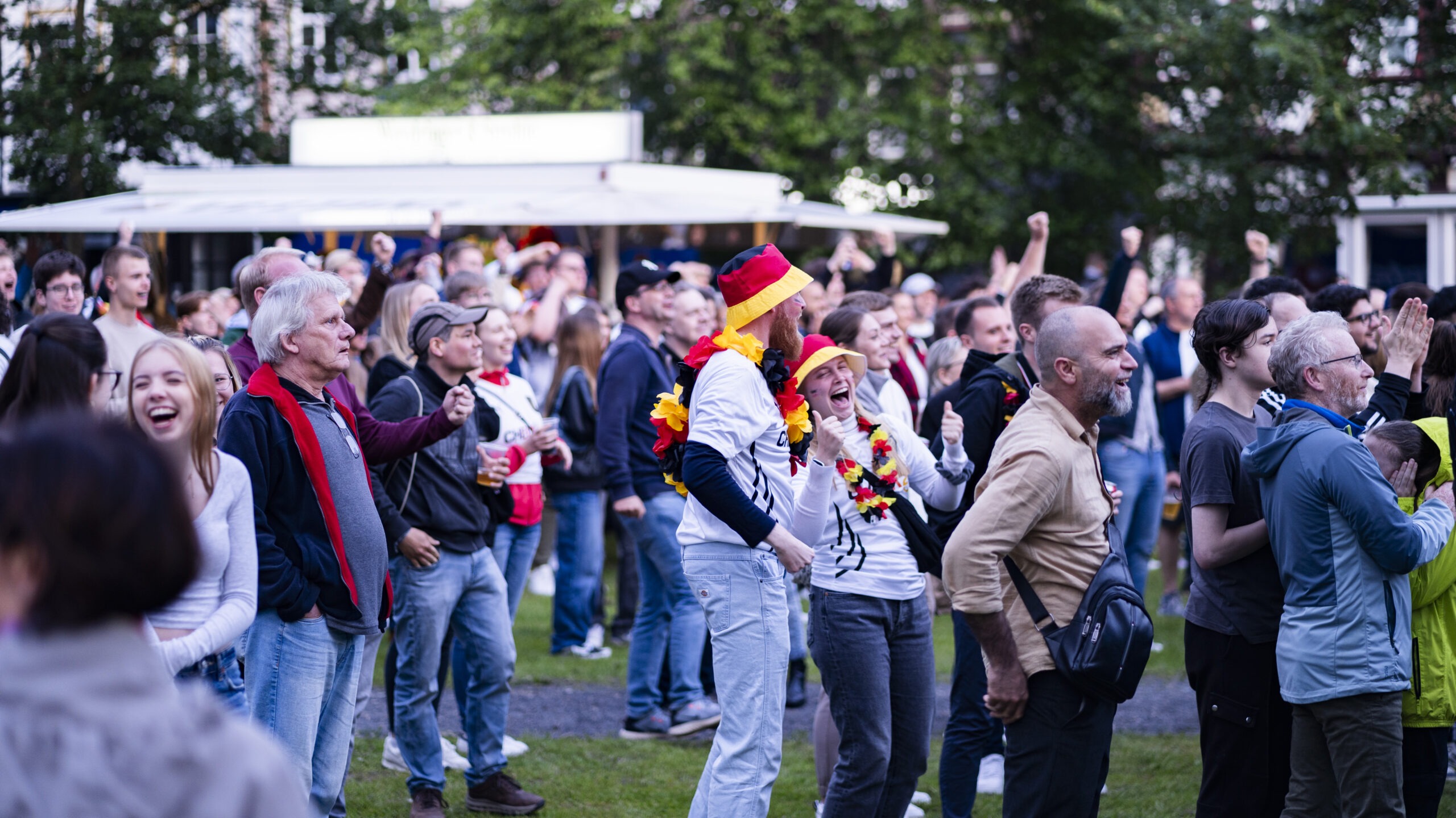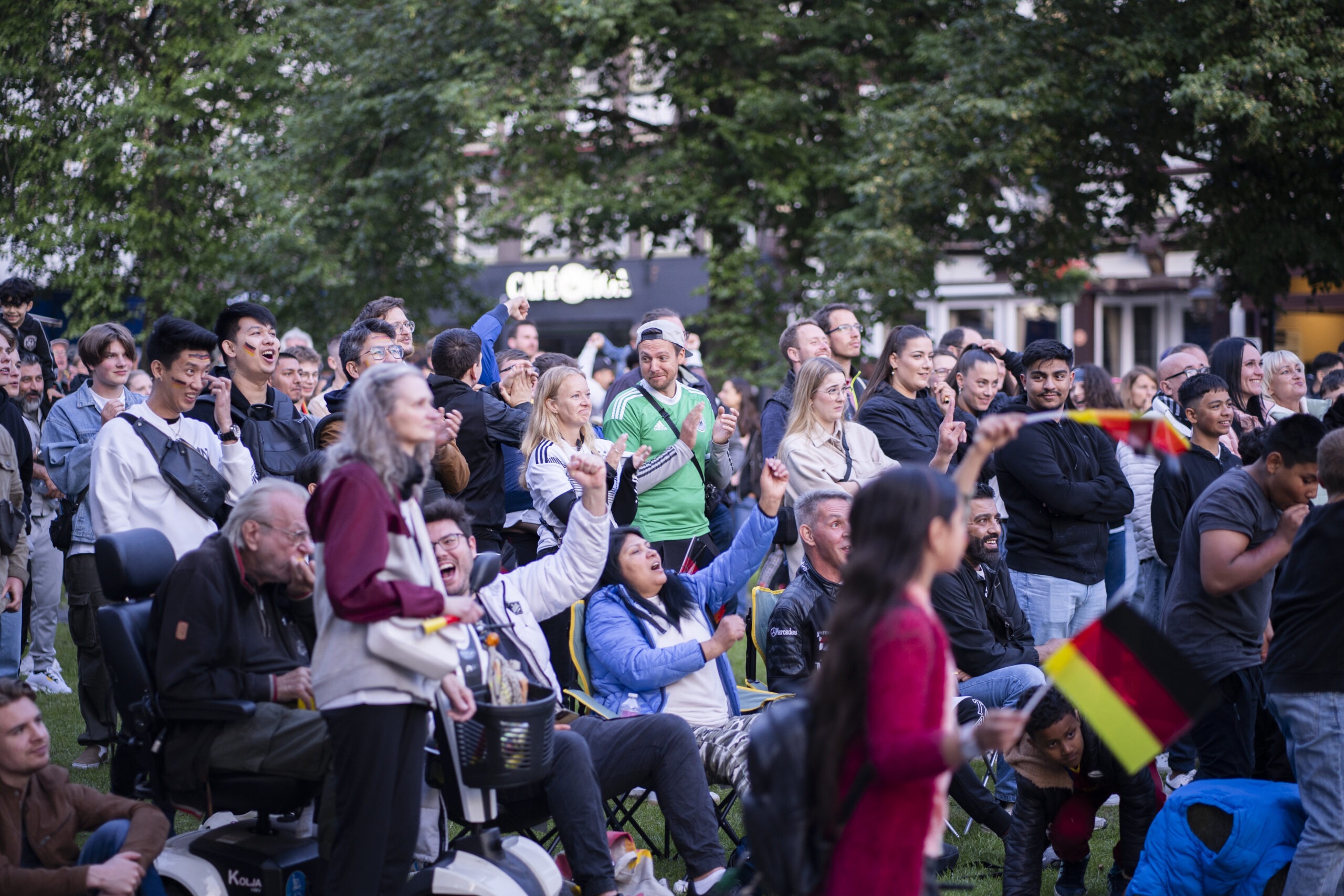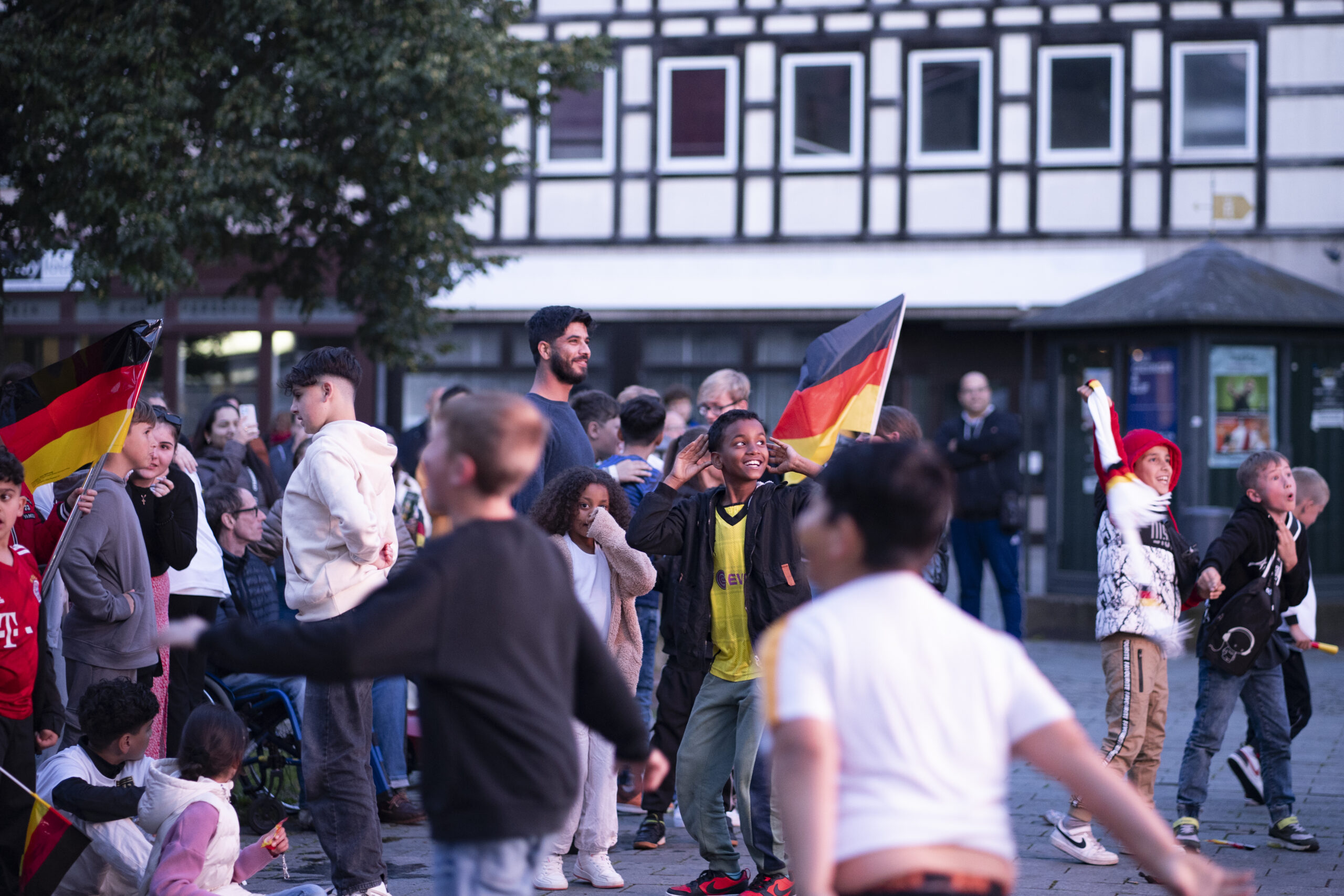 Schwarz-Rot-Goldene Wangen, Fahnen, Trikots. Northeim bejubelt am Freitag den Sieg der deutschen Mannschaft über Schottland zum Start der Europameisterschaft im eigenen Land.