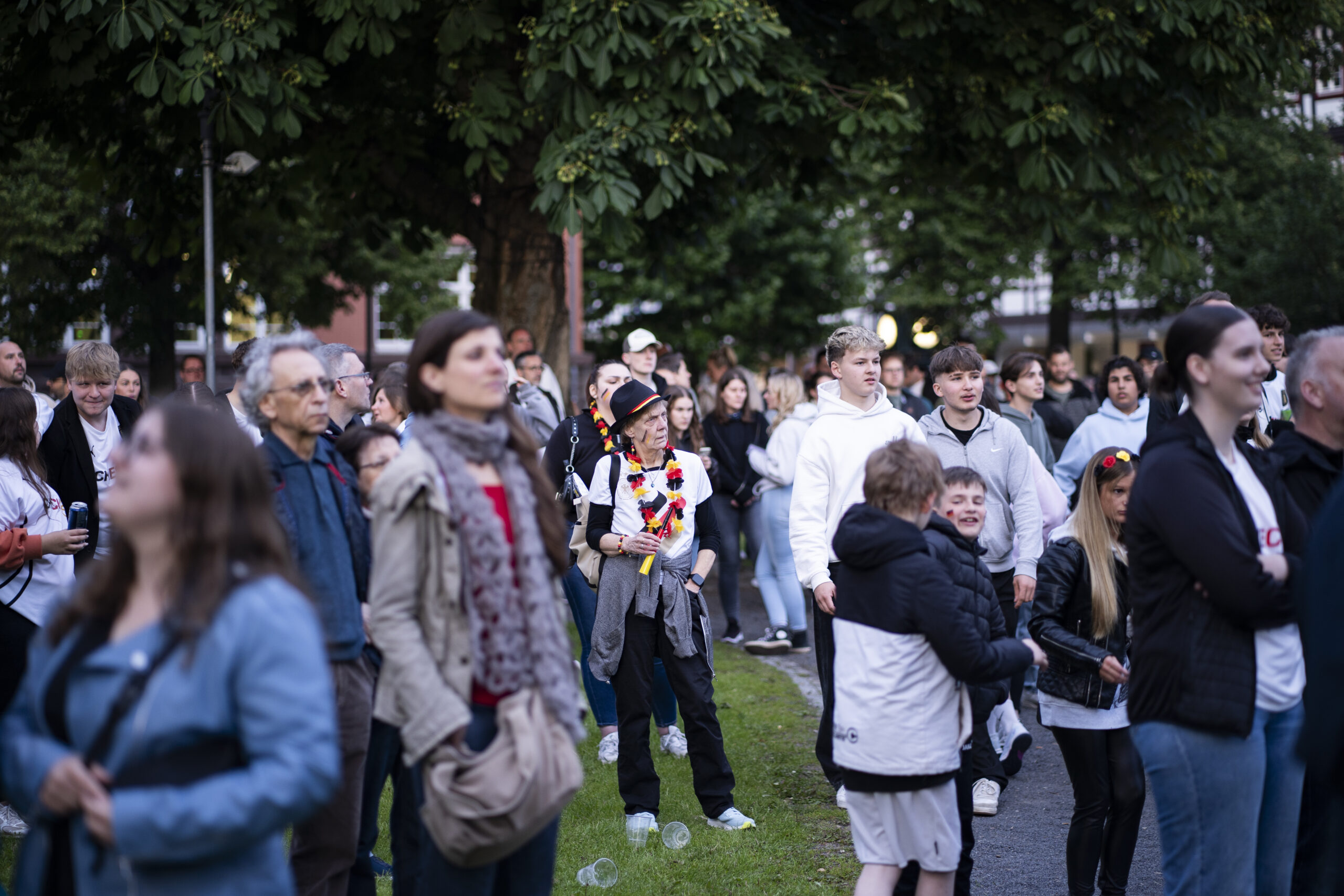 In der Spitze schauten rund 500 Menschen am Münsterplatz beim Public Viewing zu. Dort war zum Auftaktspiel eine riesige Leinwand aufgebaut. Gastronomen rund um den Platz bauten ihre Grills auf. Northeim feiert wieder eine Fußball-Party. Gleich mehrfach durften die Besucher jubeln und ihre Deutschland-Fahnen schwenken. Die Heim-Elf schlägt zum Auftakt Schottland mit 5:1. Die Stimmung: Ausgelassen. Kinder feierten in der ersten Reihe ausgelassen. Die schönsten Bilder der ersten Northeimer EM-Party gibt es exklusiv bei Northeim-jetzt.