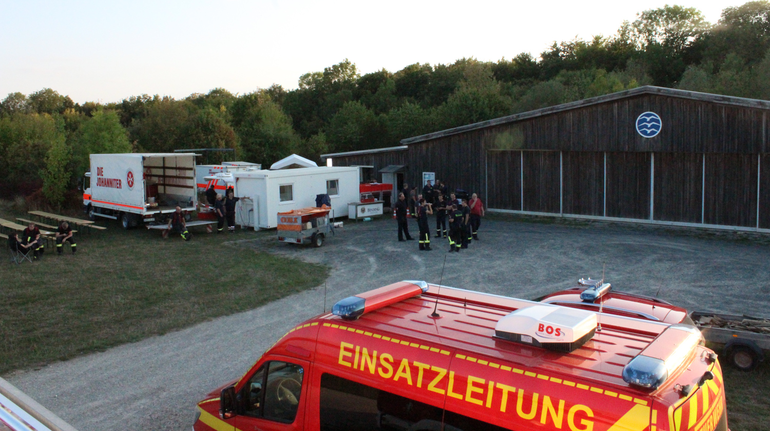 Gemeinsam mit den Technischen Hilfswerken wurde ein aufwändiger Verkehrsunfall am Weißen Budenweg in Northeim (am Kiessee) aufgebaut. Die Ausgangslage: Ein Auto ist mit einem Lastwagen samt Anhänger zusammengestoßen. Ein Auto war unter einem Anhänger begramen. Zwei weitere übereinander verkeilt.