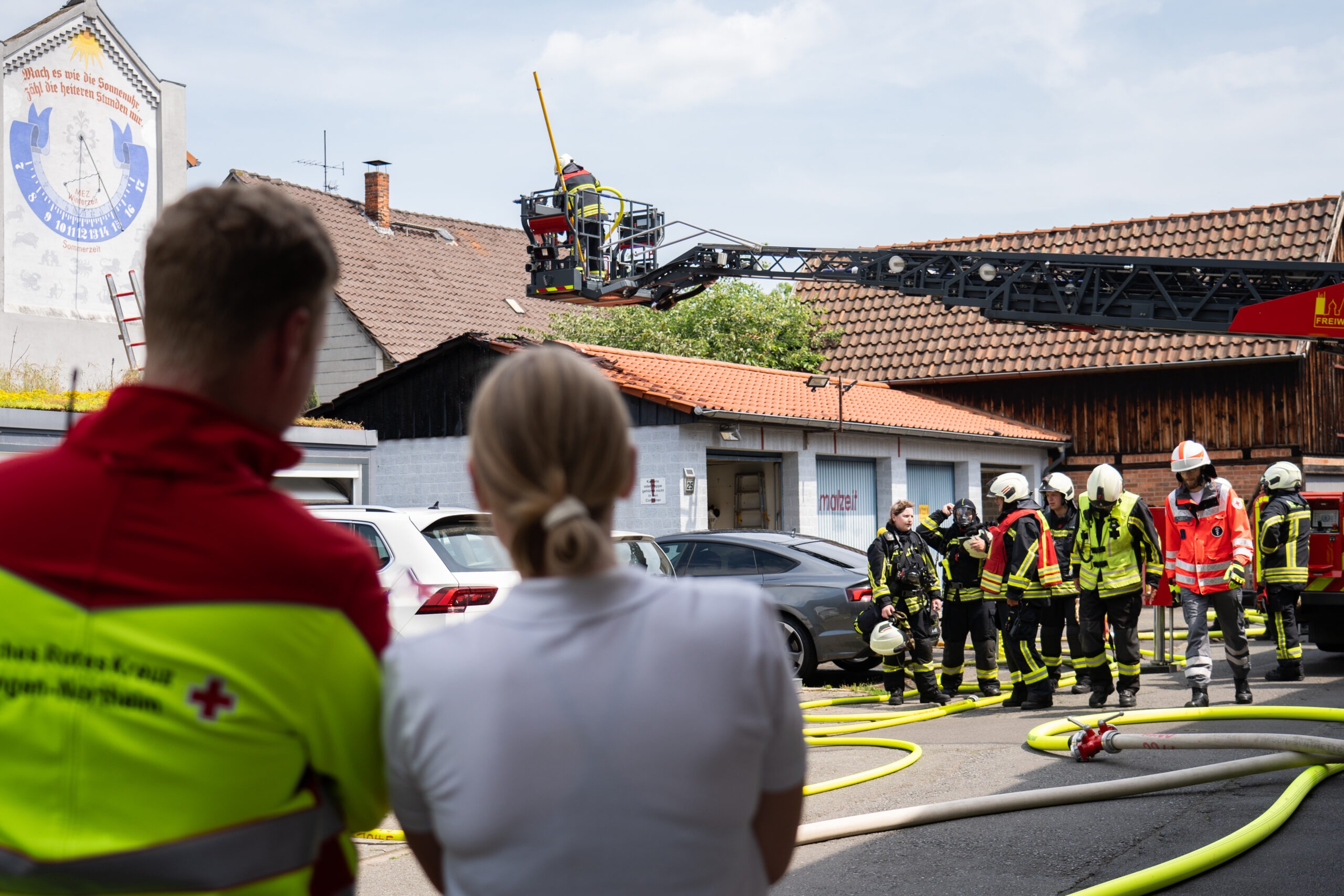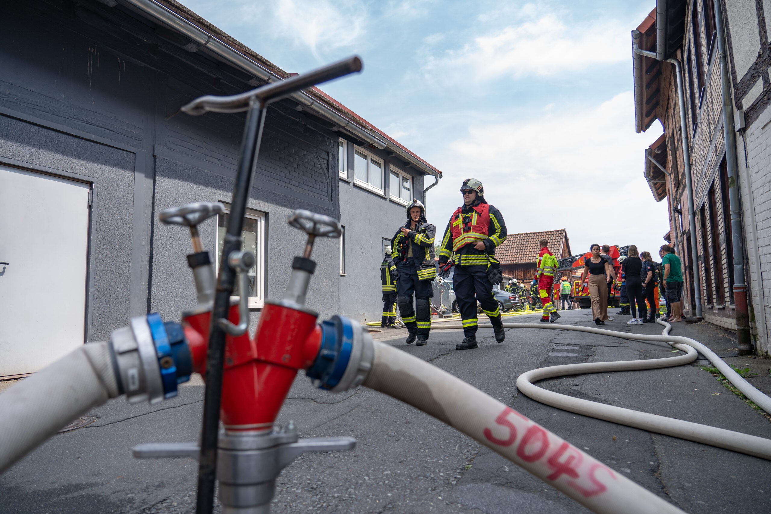 Der 22-jährige Mann wollte die Einsatzstelle durchqueren und behinderte dabei die Einsatzkräfte, sodass diese ihm verboten, den Bereich zu betreten. Weil er in der anschließenden Konversation offenbar ausfällig wurde und drohte, zogen die freiwilligen Kräfte der Feuerwehr die Polizei hinzu. Dort wurden im Anschluss die Personalien des Mannes festgestellt, ihm droht eine Anzeige wegen Bedrohung. So hatten die Rettungskräfte wieder Zeit, sich um den Brand zu kümmern.