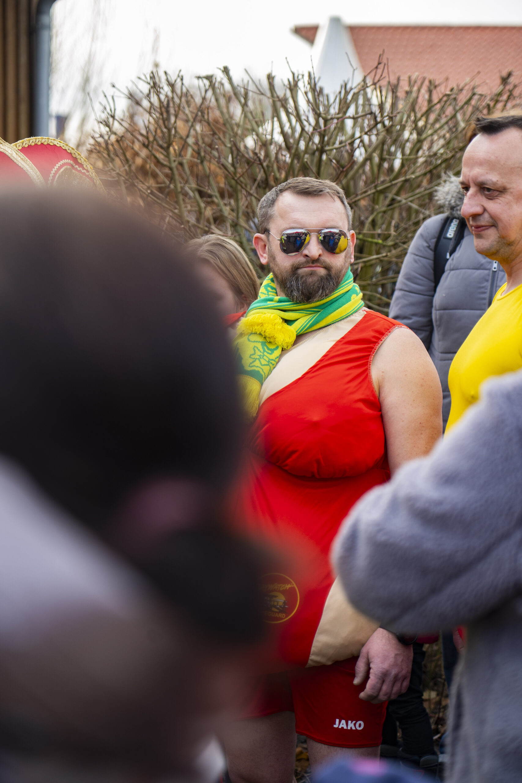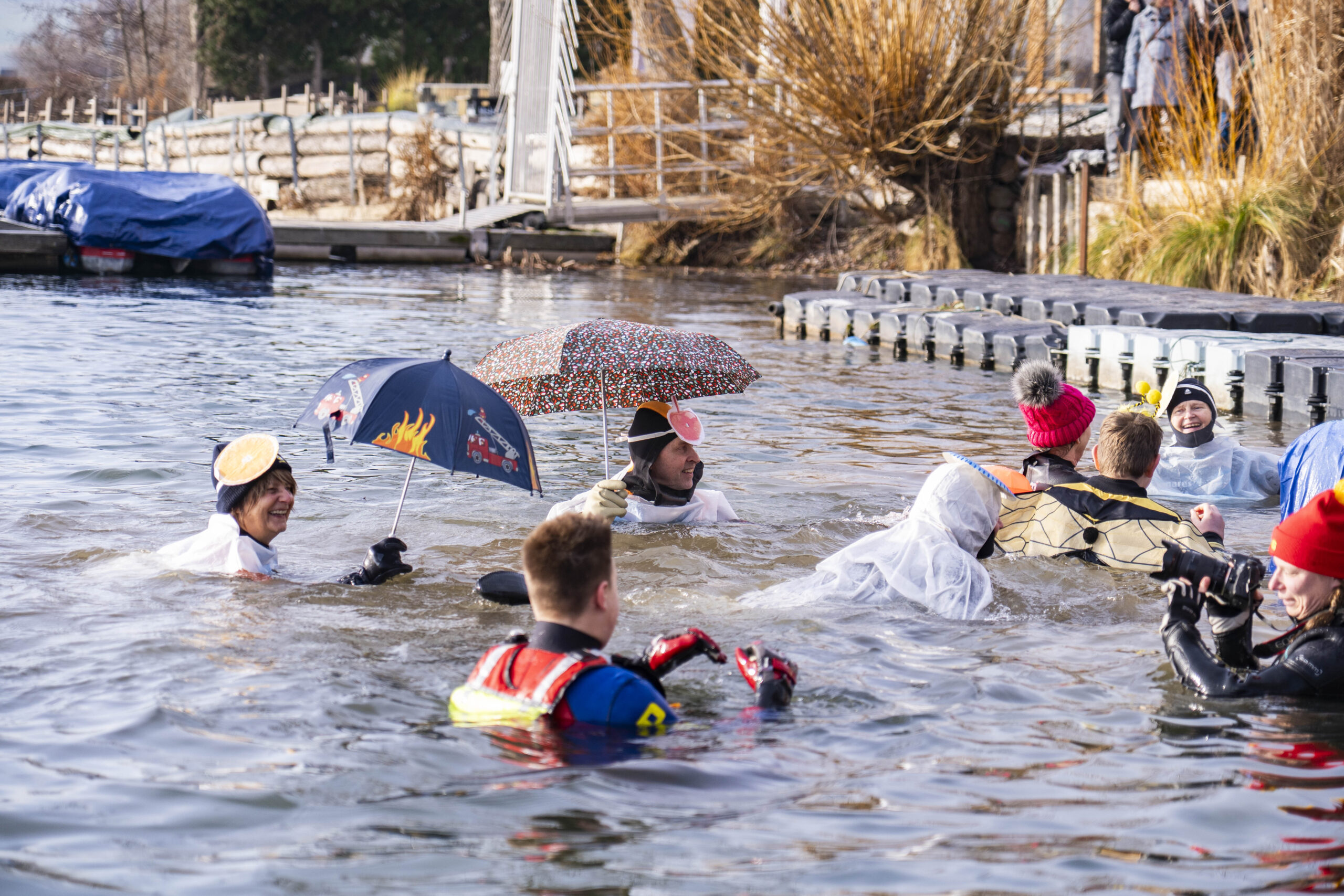 Dann der Countdown. Drei, zwei, eins – ein gemeinsamer Schrei, und schon platscht es. Ein buntes Gewimmel aus Armen, Beinen und Kostümteilen stürzt sich ins Wasser. Ein Flamingo kämpft mit seinen Flügeln, ein als Biene verkleideter Frau prustet lachend auf, eine ältere Dame mit Narrenkappe schwimmt stoisch ihre Bahn. Generationen, vereint in einem Moment aus Überwindung und purem Spaß.