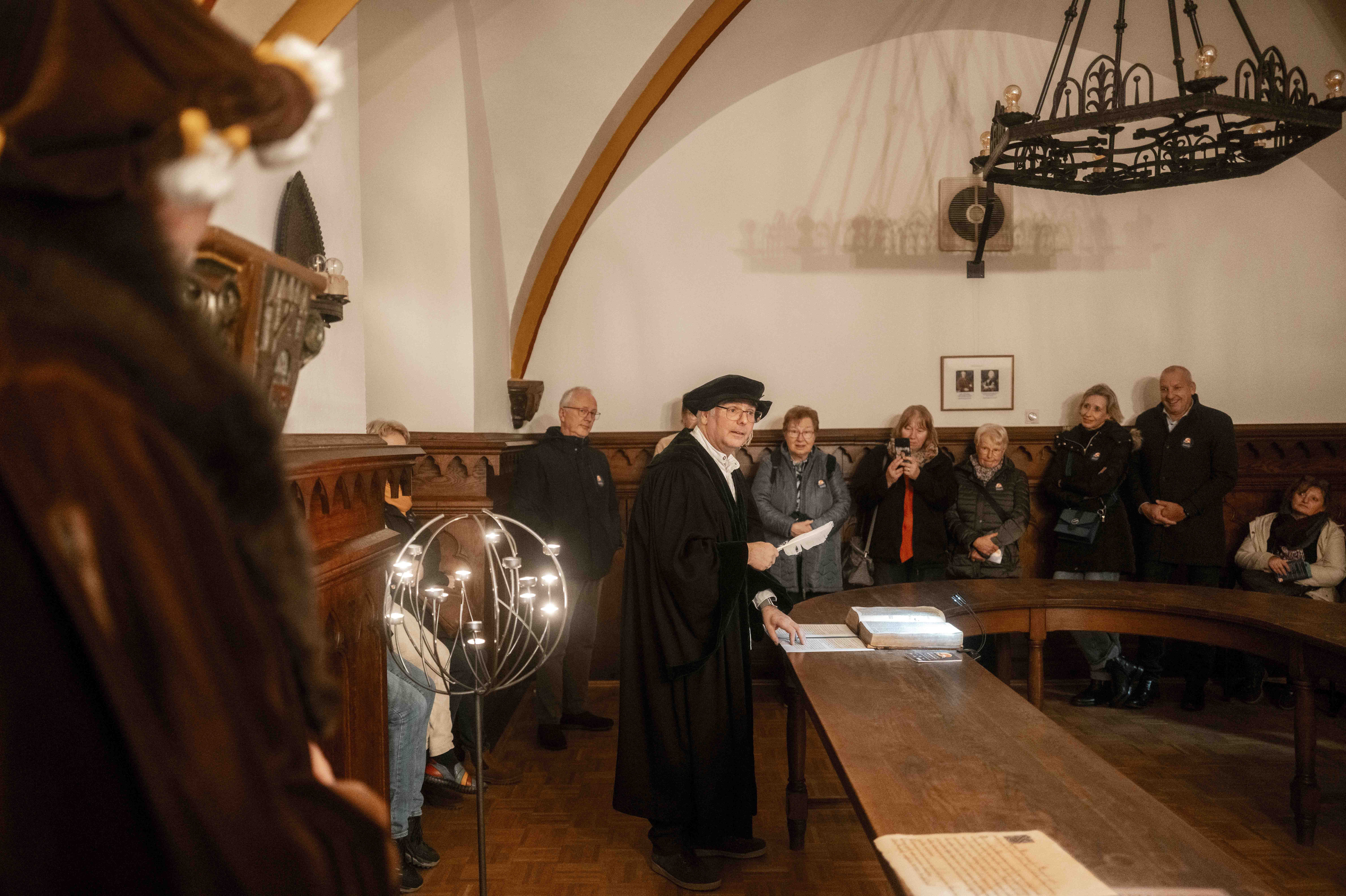 Der Bürgermeister im Kostüm, die Gäste mit Weinglas und Taschenlampe in der Hand. Für den Fotografen gab es viele Momente, die er nun mit uns teilen kann. „Da geht ja jetzt auch keiner mit schlechter Laune hin, das ist klar. Aber insgesamt war die Stimmung sehr positiv und angenehm“.