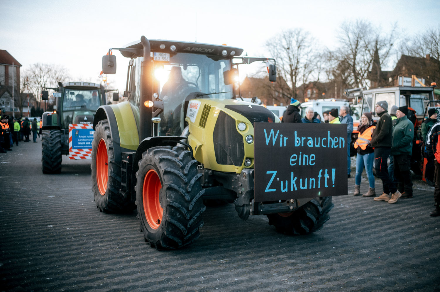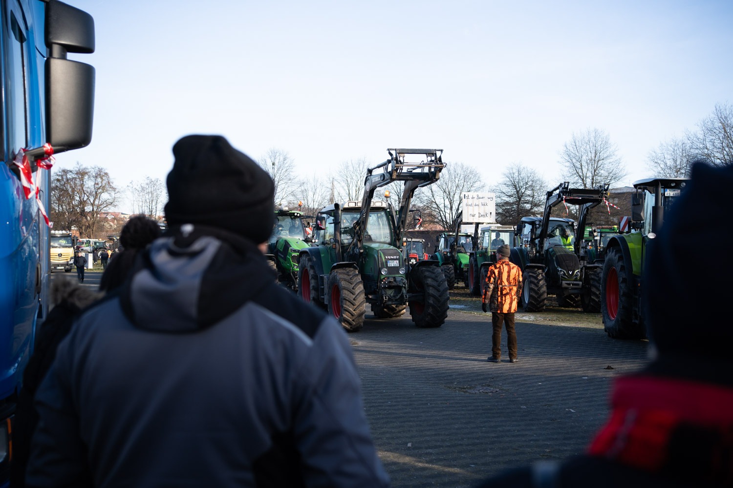 Das, was die Landwirte gerade tun, sei drastisch und ein Einschnitt auch für viele Menschen in Deutschland. „Das tut uns leid. Wir entschuldigen uns dafür, aber wir sehen keine andere Möglichkeit, für unsere Anliegen einzutreten“, sagt Hartmann. „Wir sind bereit, als Unternehmer und als Bürger dieses Landes unseren Teil dazu beizutragen, dass dieser Staat auch weiter funktionieren kann. Es ist völlig ungerechtfertigt, durch die geplanten Steuererhöhungen uns so einen riesigen Batzen als kleine Gruppe von Menschen und Unternehmern aufzubürden. Das können wir nicht akzeptieren, das wollen wir nicht hinnehmen. Dafür demonstrieren wir heute.“
