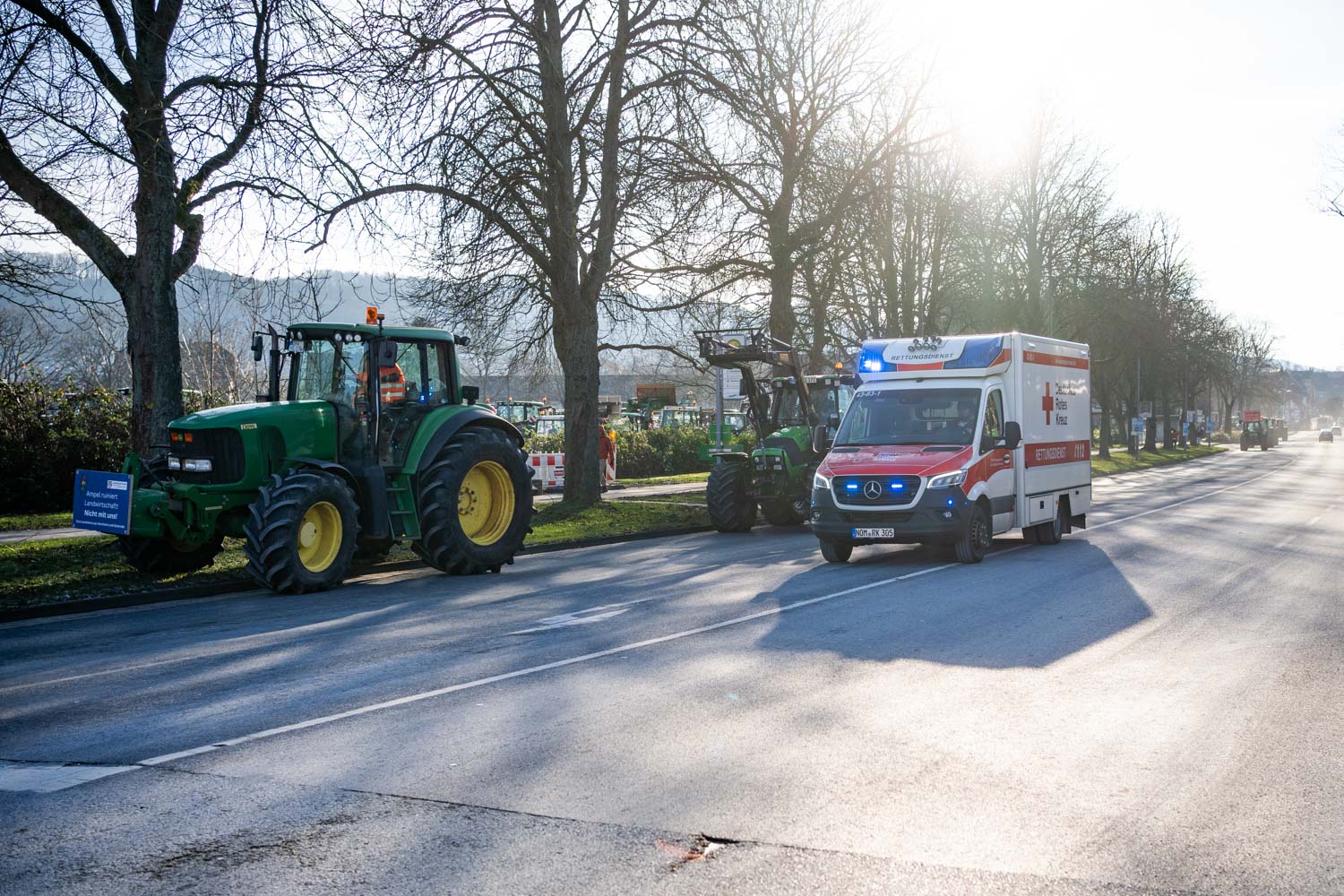 Umso dankbarer ist er, dass alles friedlich verlief. Dankbar gegenüber der Polizei, die laut Pressesprecherin Christin Millius „sehr glücklich“ mit dem Verlauf ist, aber auch gegenüber den Solidaritätsbekundungen auch zum Zeitpunkt, als die Landwirte bereits die Straßen verstopften. „Es ist schade, dass wir demonstrieren müsse, aber es ist gut, dass wir so eine gute Resonanz hier haben“, sagte Hartmann im Rahmen einer kurzen Kundgebung. „Ich möchte mich auch ganz herzlich bedanken für die große Solidarität, die wir in weiten Teilen der Bevölkerung genießen“, ordnet Hartmann die bisherigen Reaktionen ein. „Wir haben oft den Eindruck, dass wir diskreditiert werden. Aber jetzt merken wir, dass wir doch ein gutes Ansehen haben der Bevölkerung.“