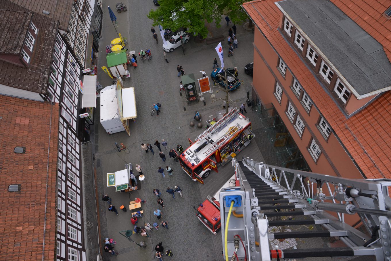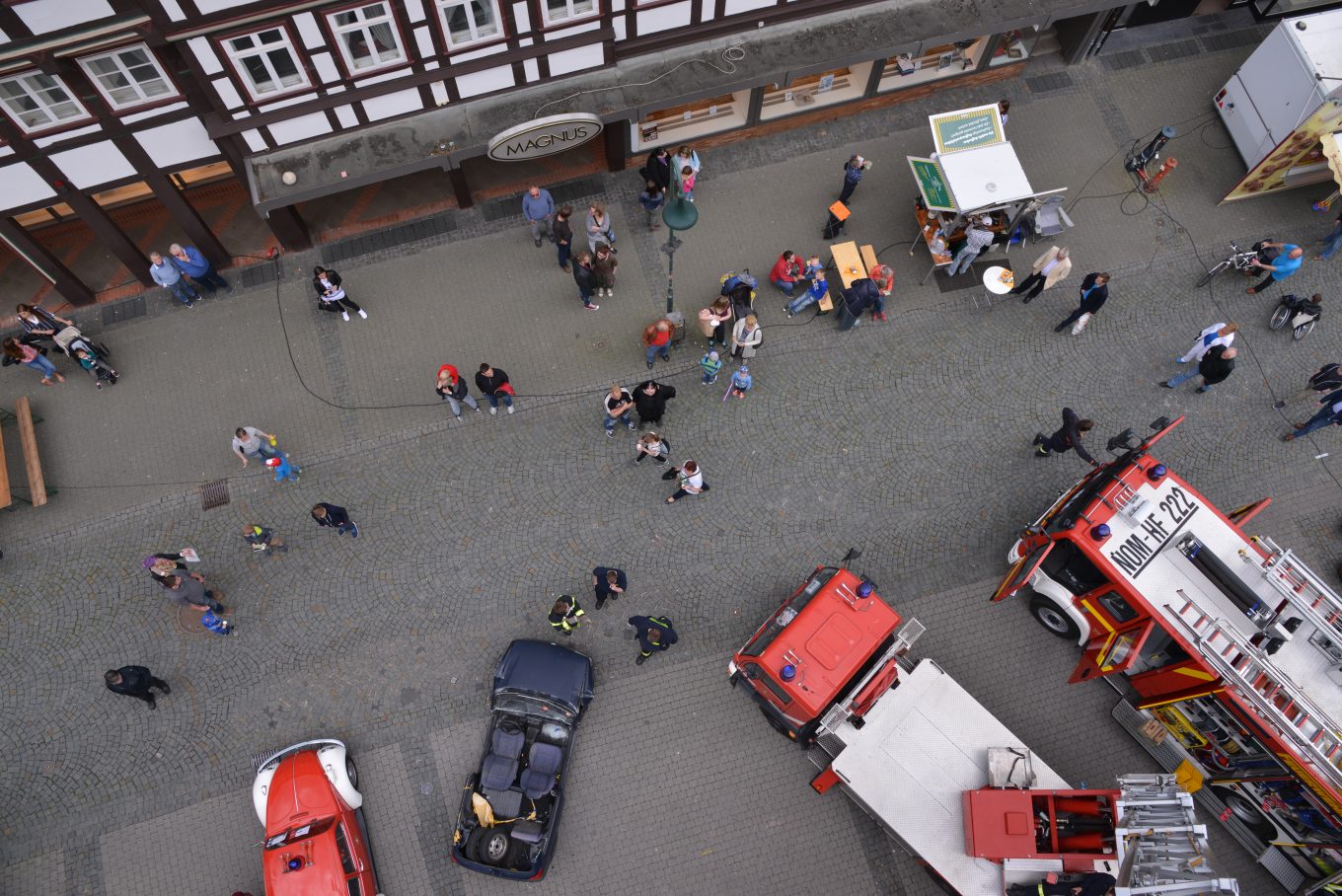Sagt, was ihr wollt: aber die Feuerwehr macht jedes Jahr Action auf der NOM MOT. Einmal durften wir sogar mit der Drehleiter über die Dächer der Innenstadt (zumindest die Kamera durfte mit rauf). Die Bilder haben wir natürlich nicht nur in unseren Köpfen behalten.