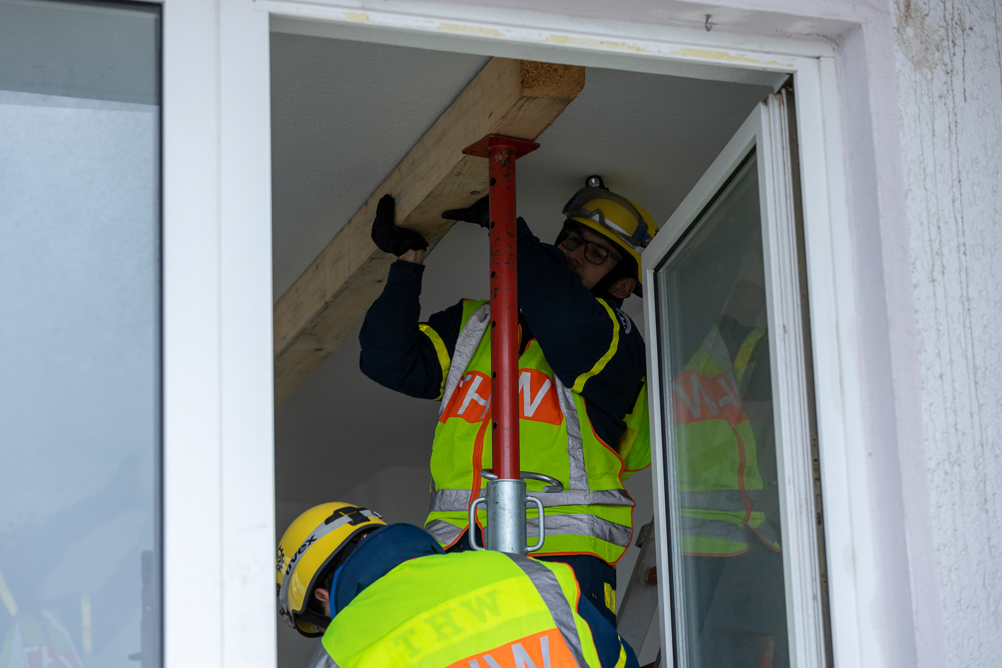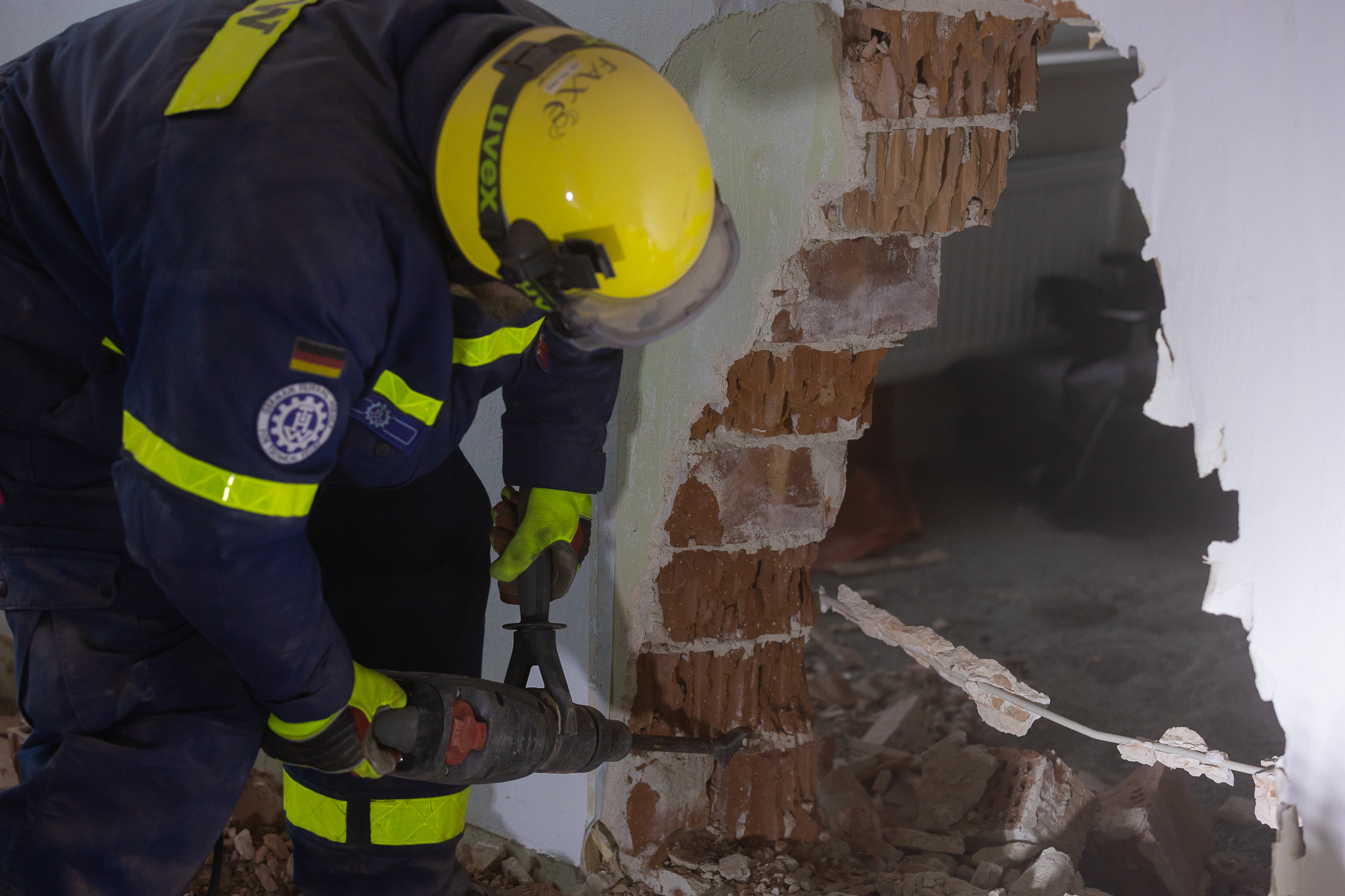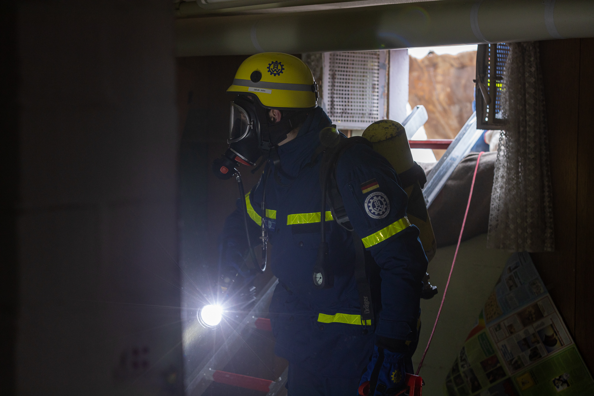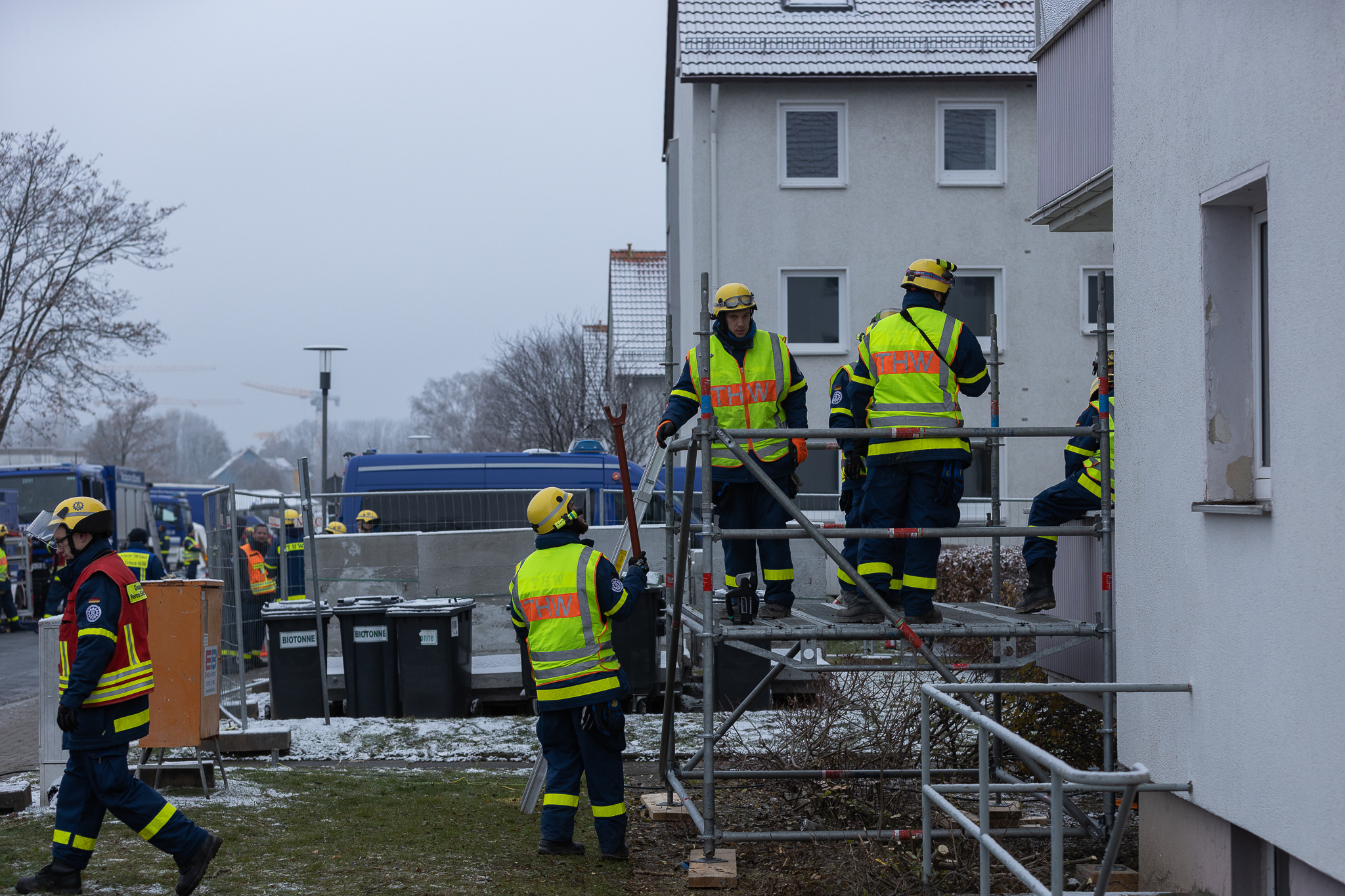 Die Ausgangslage: Mehrere Personen waren nach einer Explosion bei Abrissarbeiten in einer Wohnsiedlung vermisst. Die Gebäude waren nicht mehr zugänglich und der einzige Weg war „mitten durch die Wand oder Decke“, berichtet Maximilian Radke als Beauftragter für Öffentlichkeitsarbeit.