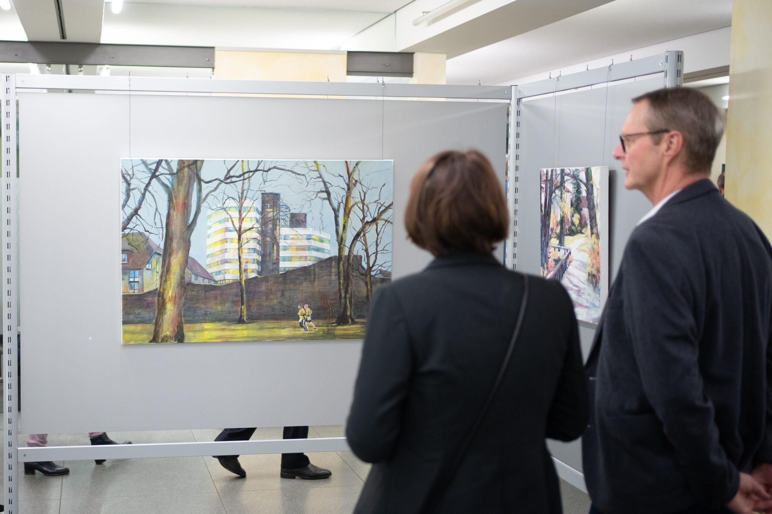 „Wir finden uns in den Bildern der Ruhe genauso wieder wie in der Bewegung“, sagt er am Rande der Ausstellung. Und auch Leinemann, der sich hin und wieder den Runden am Wall in Göttingen hingibt, beschreibt den Kreislauf der Laufenden und das Leben im Moment, welches die Motive von Irene Pregizer auf „ihre eigene Art und Weise“ einfangen. Von der Kunsthistorik nahm Leinemann an diesem Abend Abstand. „Das wird weder uns hier noch den Werken gerecht“, sagt der Wissenschaftler.