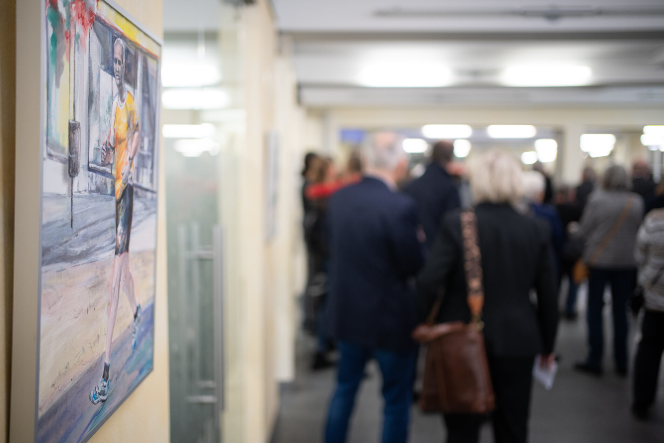 Vor allem aber finden sich Läuferinnen und Läufer in Gefühlen dieser Bilder wieder. Etwas, das sowohl KSN-Vorstand Bernd Sommer als auch Kunsthistoriker Alexander Leinemann in ihren Laudationen aufgreifen. Denn beide, Sommer und Leinemann, sind ihren Schilderungen nach selbst leidenschaftliche Läufer. Dass Sommer den einen oder anderen Marathon auf der Uhr hat, wissen viele sicherlich noch gar nicht.