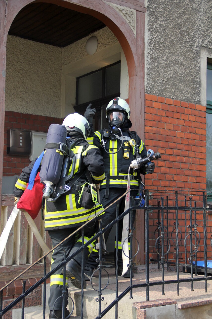 Ein Atemschutztrupp suchte die Wohnungen nach Personen ab. Während des Einsatz war kein Anwohner mehr im Haus.