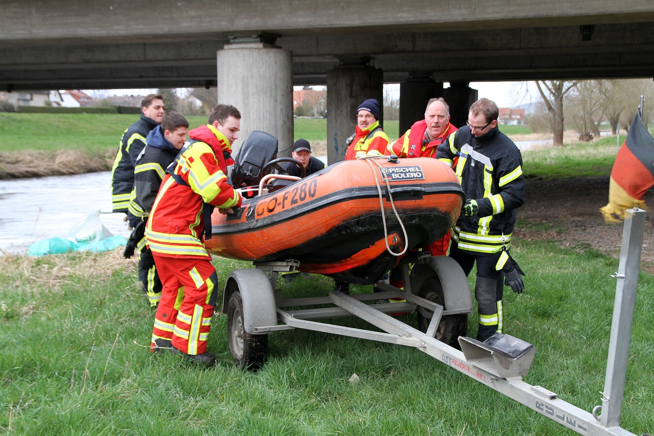 Vor Ort waren bis zum Nachmittag etwa 40 Einsatzkräfte der Feuerwehr Northeim und Höckelheim, Northeims Bürgermeister Simon Hartmann, zwei Mitarbeiter des Ordnungsamtes der Stadt Northeim, ein Mitarbeiter des Bauhofes Northeim, eine Mitarbeiterin der Unteren Wasserbehörde des Landkreises Northeim und die Polizei. Der Bundestagsabgeordnete Dr. Roy Kühne hatte sich ebenfalls über die Arbeiten der Einsatzkräfte informiert.
