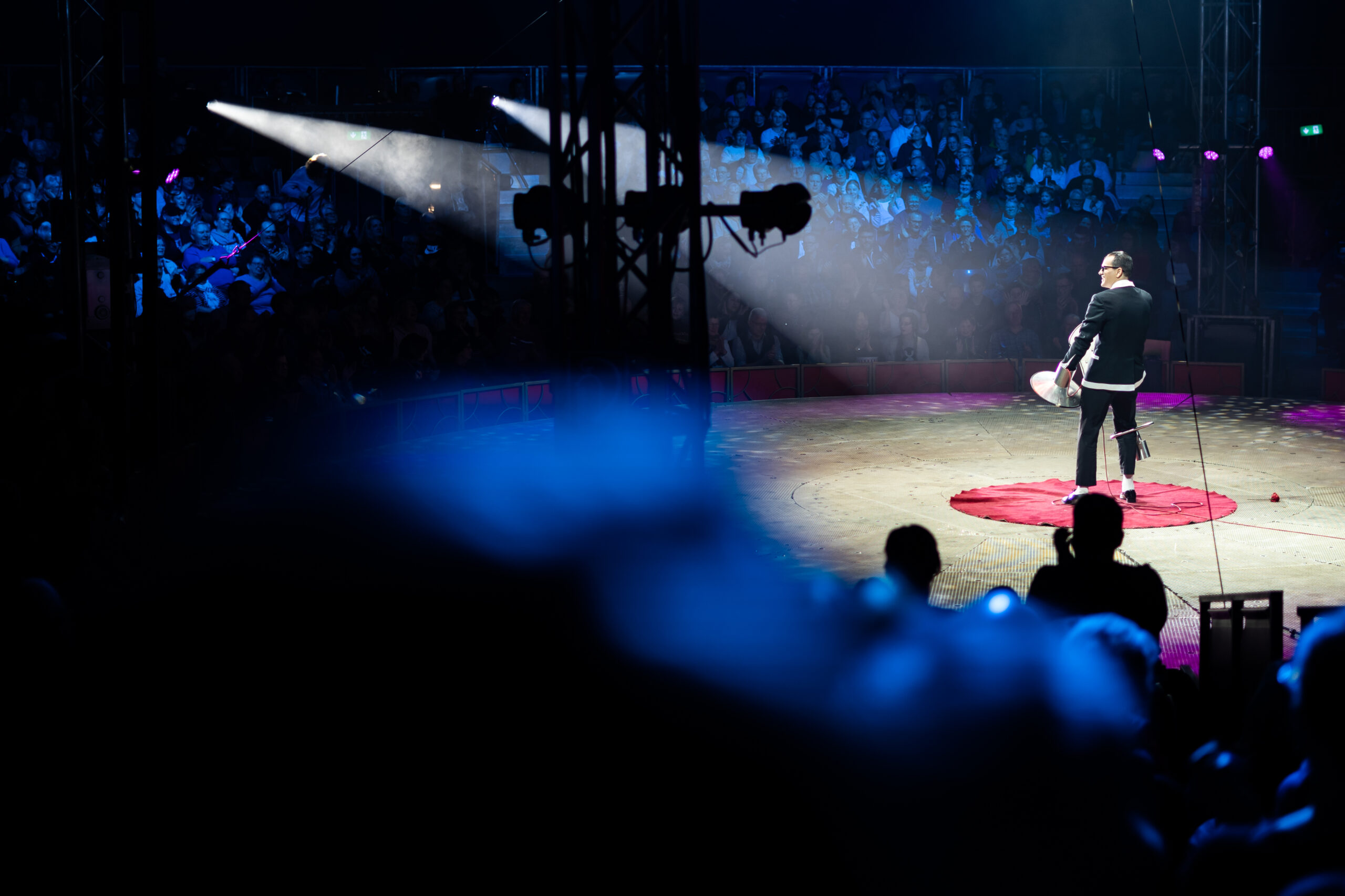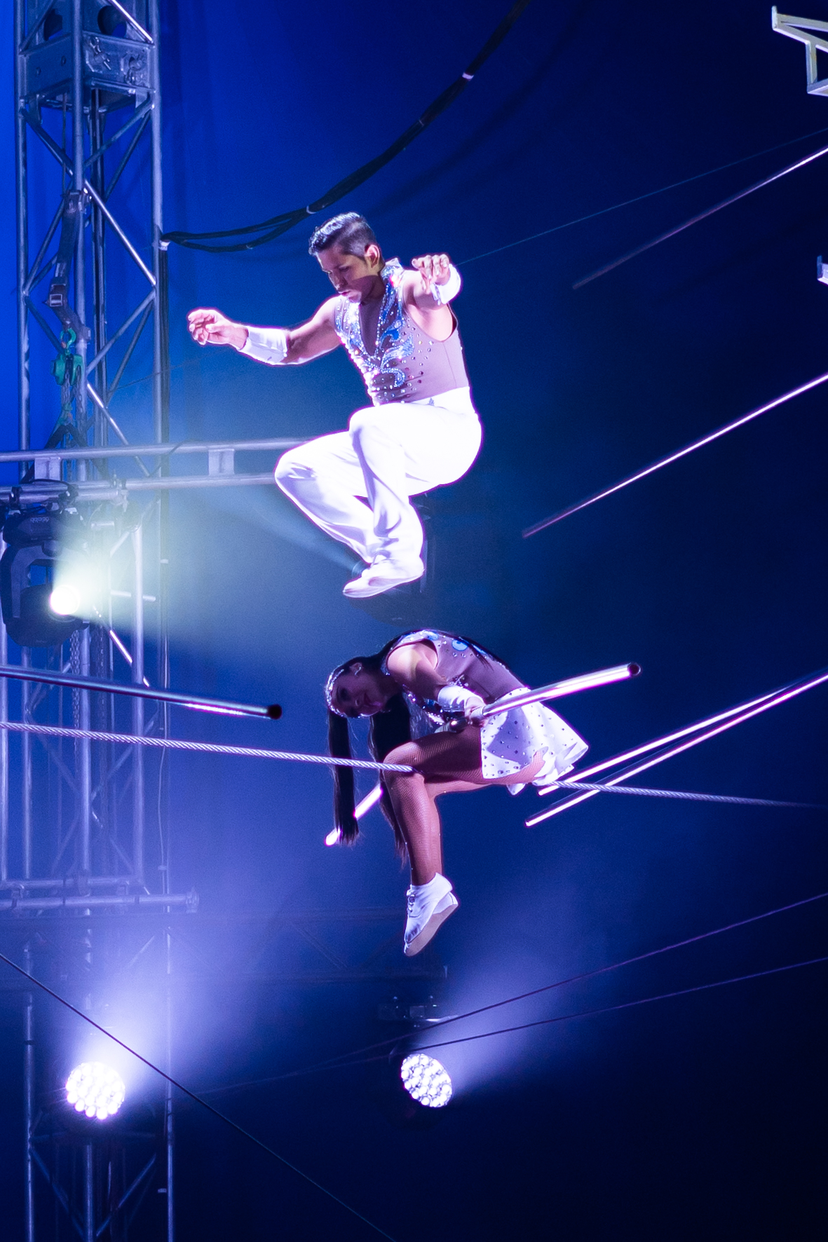 Comedy-Star César Dias, schon seit vielen Jahren Teil der Charles-Knie-Familie, lockerte die angespannten Nerven immer wieder mit kleinen und großen Sketchen zwischen den artistischen Akten auf. Aber nur, bis Laura Urunova mit ihren trainierten Hunden und Papageien wieder Herzen dahinschmelzen ließ. Lorenzo Bernardi zeigte, wie sehr sich ein Körper biegen lässt, ohne zu brechen. Doch bis zum Brechen angespannt waren die Nerven zum großen Finale, als „Truppe Robles“ aus Kolumbien auf drei Stockwerken über das Drahtseil balancierten. Erst, als alle Artisten die rettende Gegenseite erreicht hatten, löste sich die Anspannung mit donnerndem und tobendem Applaus.