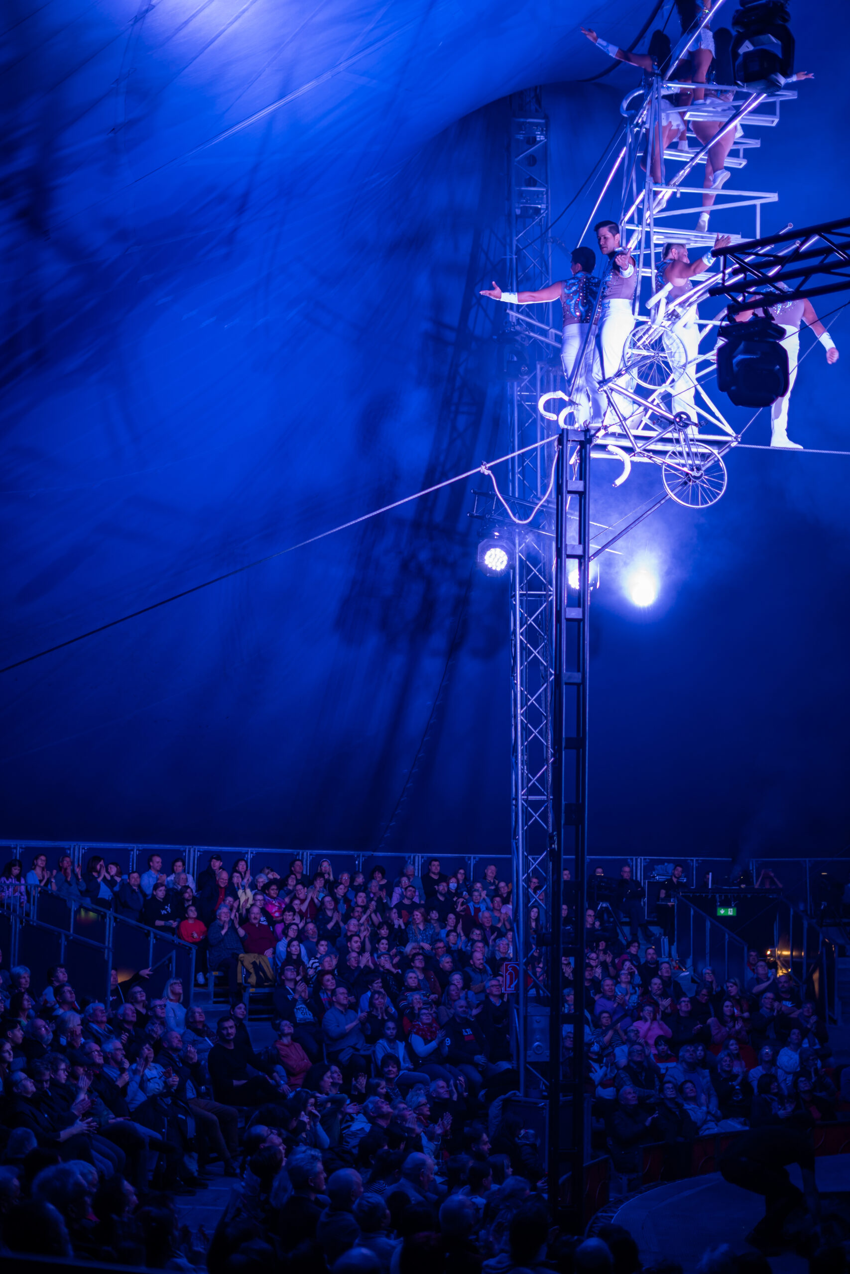 Zu Recht waren die Premiere-Vorstellungen am vergangenen Wochenende restlos ausverkauft. Zu Recht verabschiedete sich das Publikum mit tobendem Applaus von ihren Artistinnen und Artisten. Denn zuvor haben diese mehr als zwei Stunden lang begeistert. Veronika und Paolo Ernesto verdrehten auf ihren Rollschuhen nicht nur Köpfe, sondern auch die Herzen der Zuschauer. Die Magic-Show der Jidinis verzauberte das Publikum und sich durch alle Dimensionen. Oleksii Malyi und seine Partnerin Nataliia Ruzhylo vertrauten nicht nur sich blind, sondern auch ihrer Bisskraft, als sich beide nur mit den Zähnen haltend vom Zeltdach seilten.