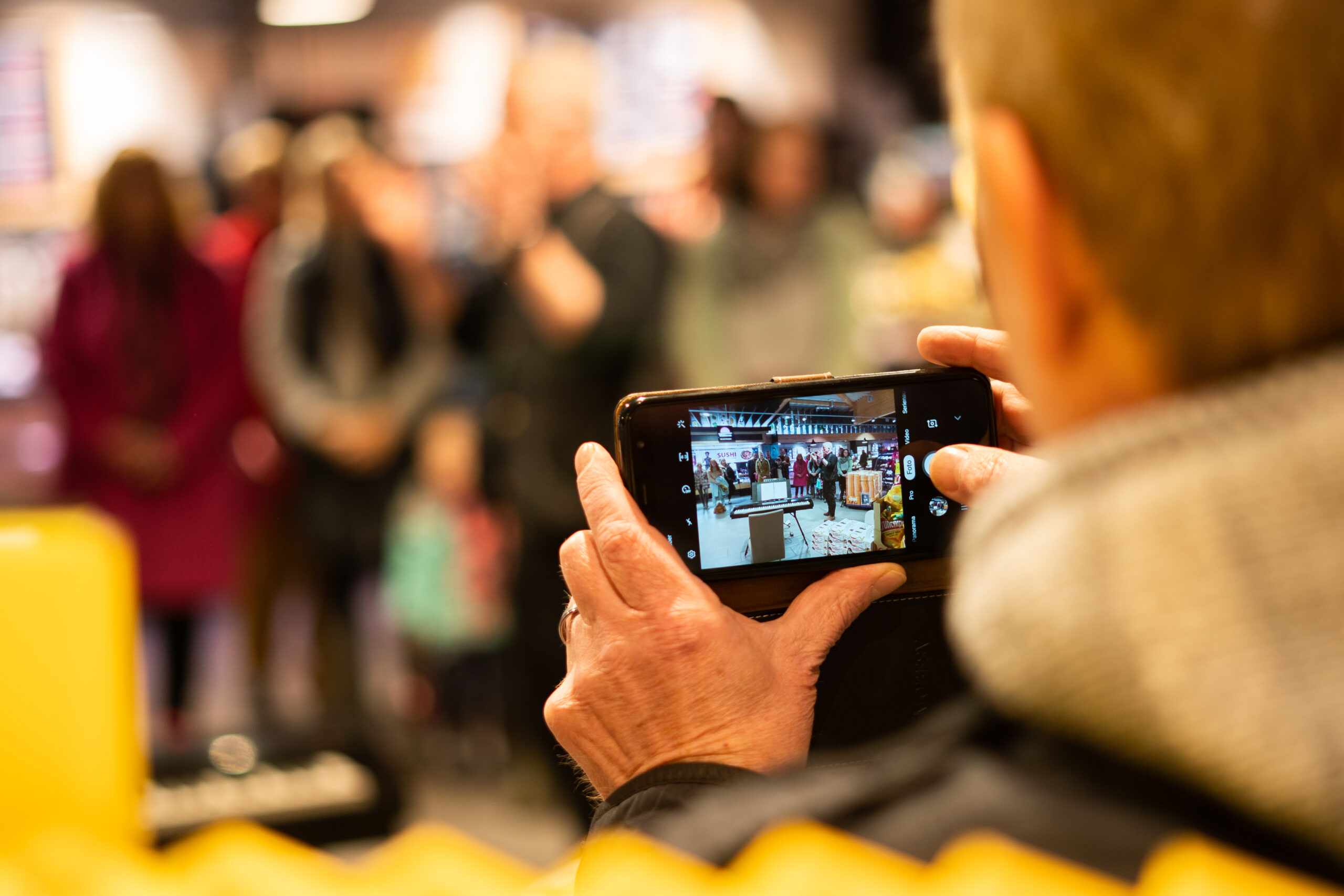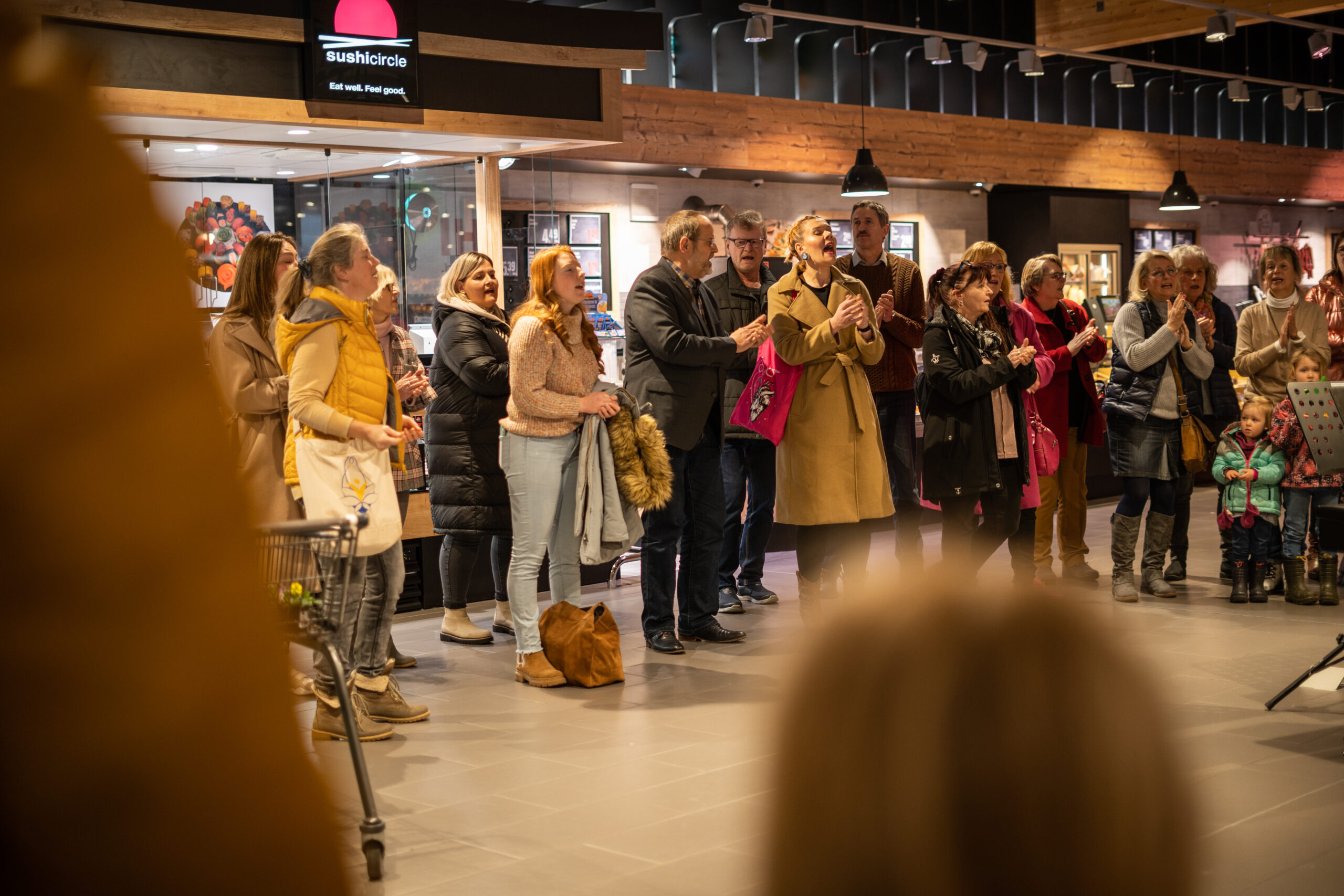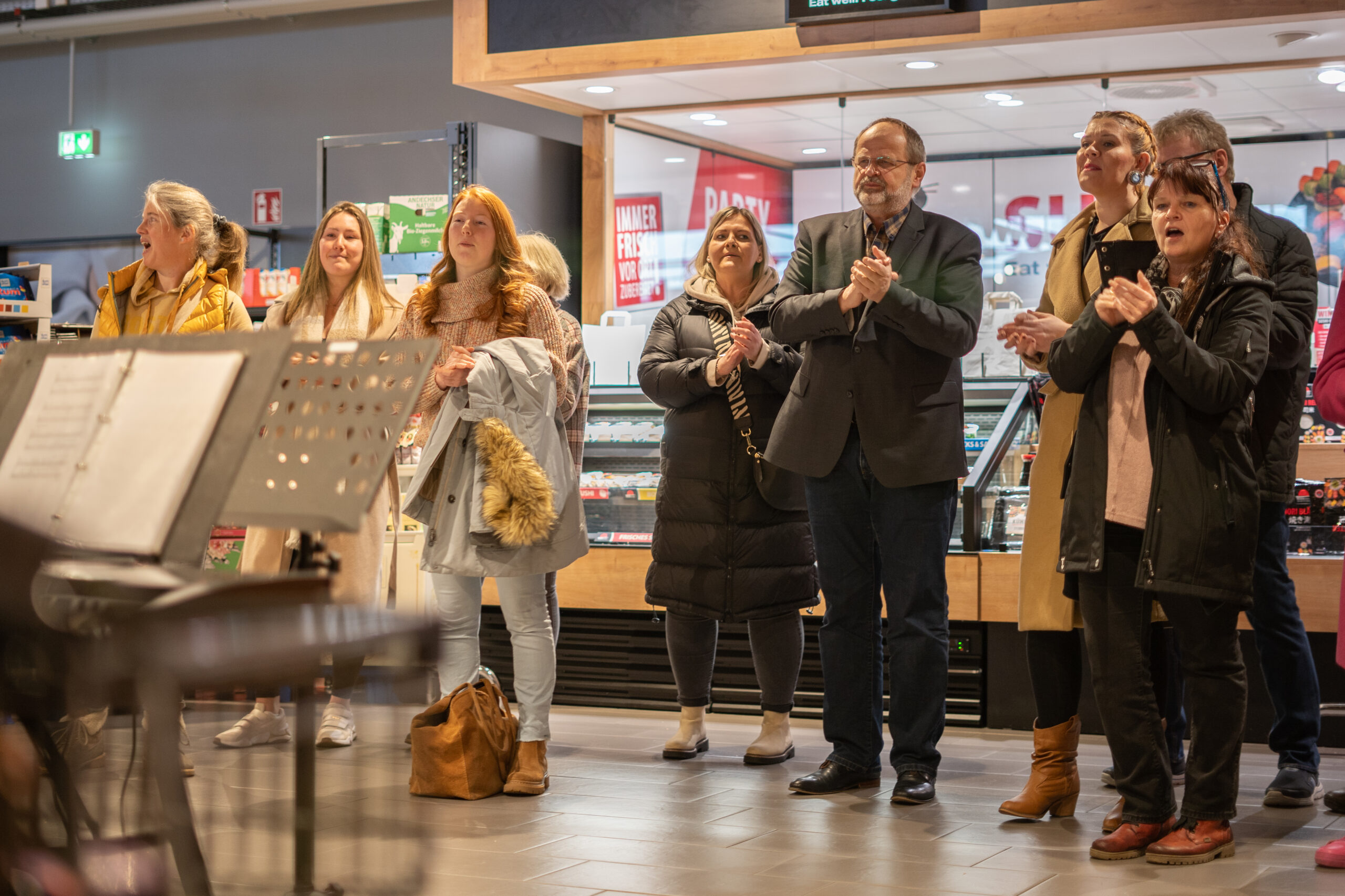 Viele Besucher und Kunden des Supermarktes blieben stehen, hörten zu oder zückten das Handy, um diesen kurzen Moment einzufangen. Viele klatschten mit oder entdeckten ihre eigene Singstimme.